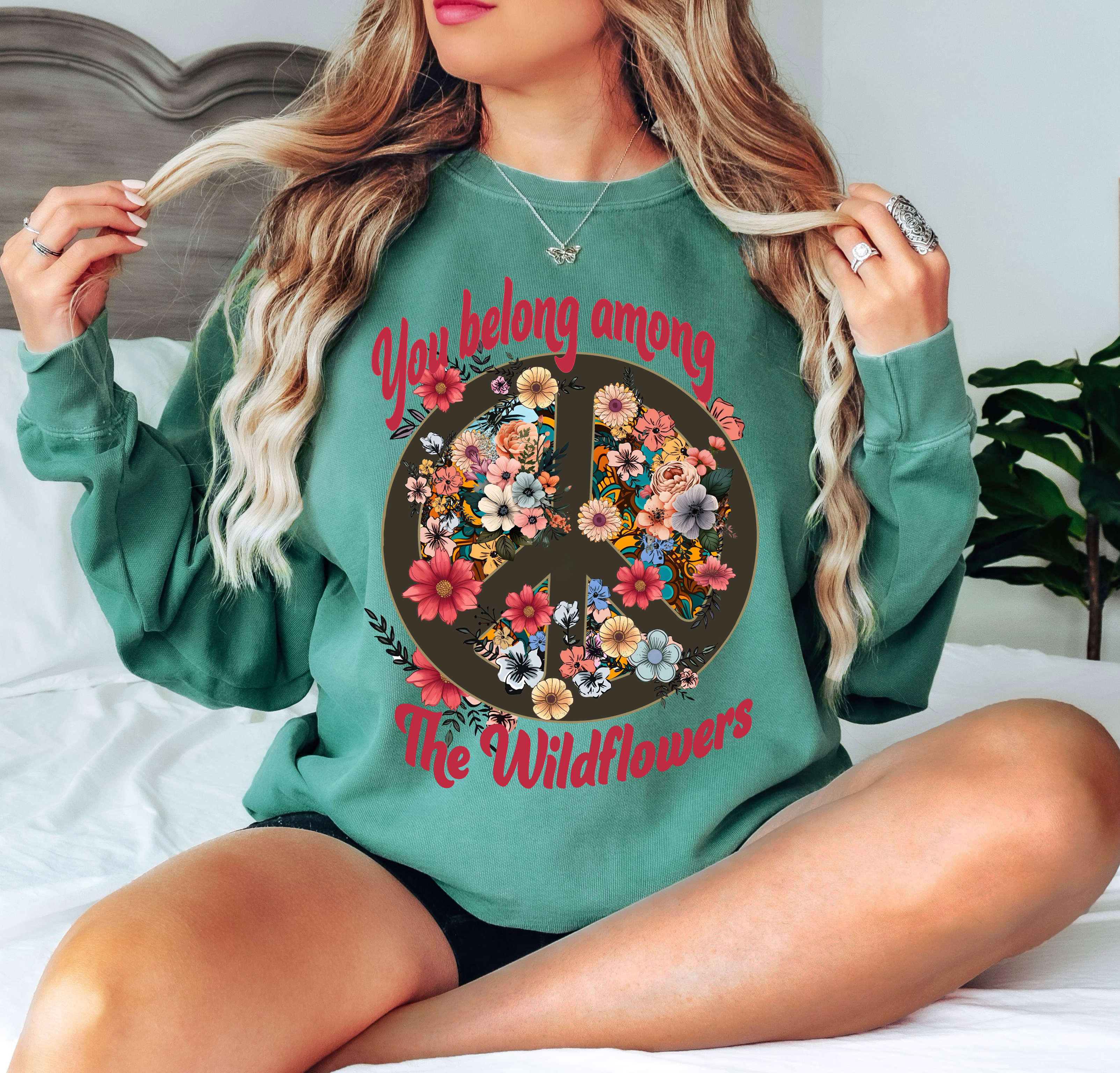 You Belong Among the Wildflowers Retro Peace DTF Print