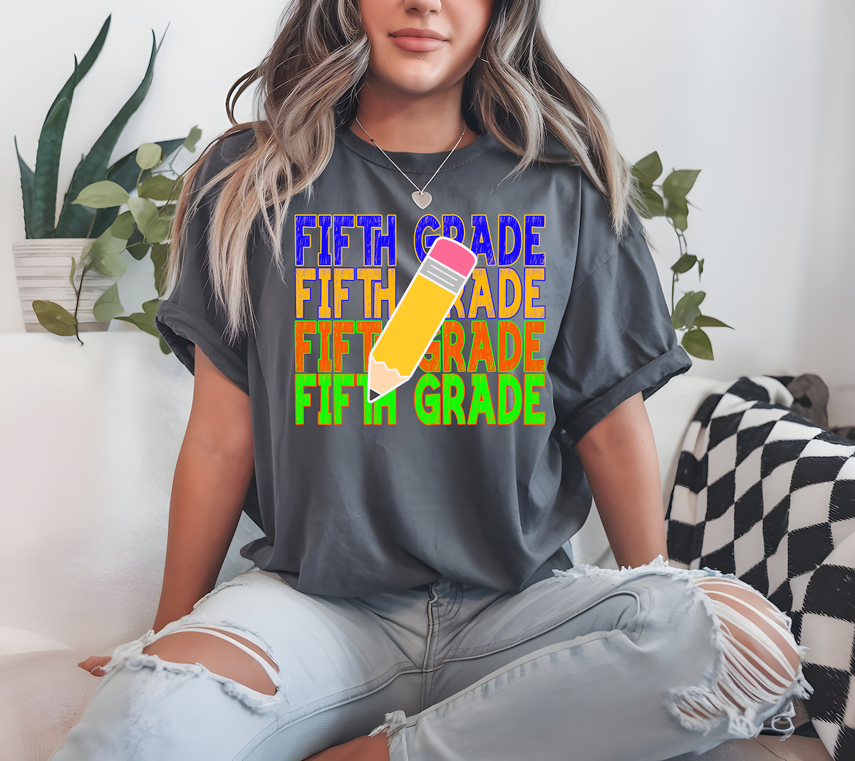 Fifth Grade Bookworm Repeat Solid Pencil DTF Print