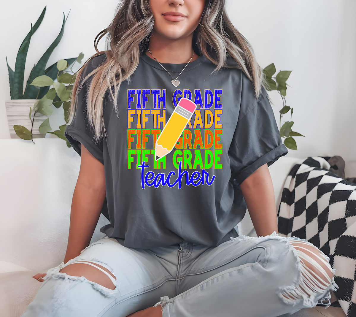 Fifth Grade Teacher Bookworm Repeat Solid Pencil DTF Print