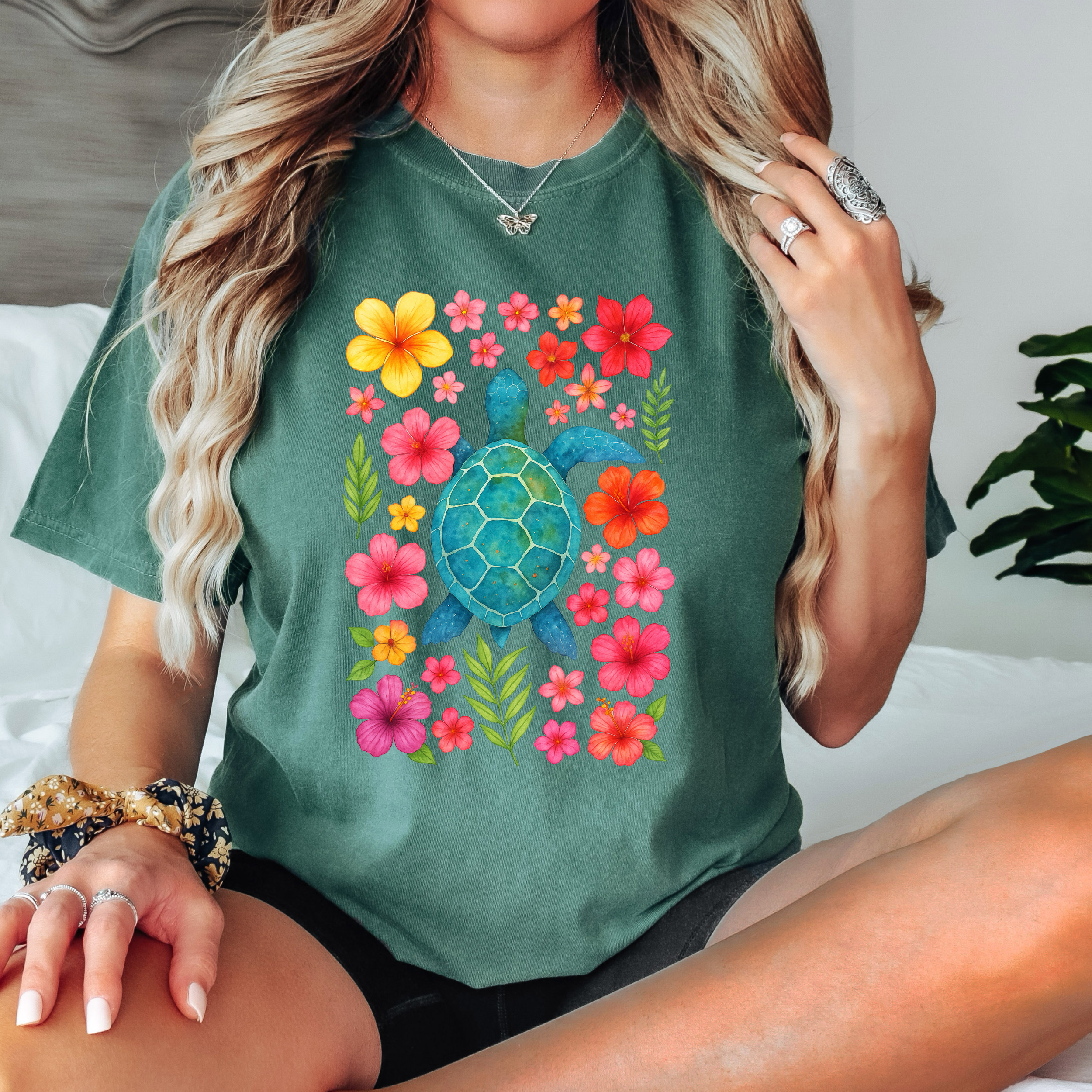 Floral Sea Turtle DTF Print