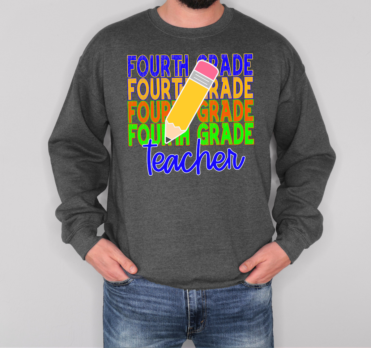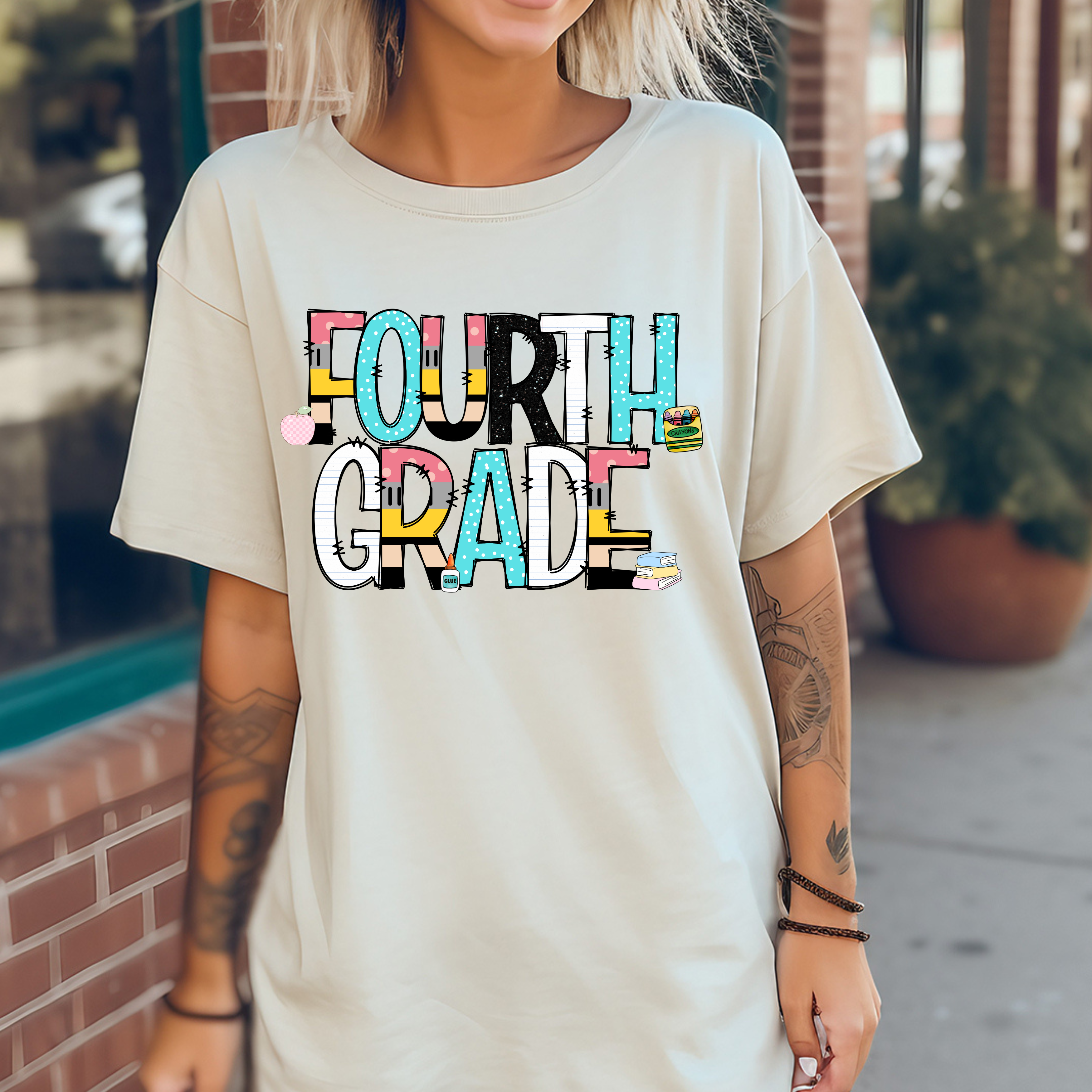 Fourth Grade Bookworm Repeat Solid Pencil DTF Print
