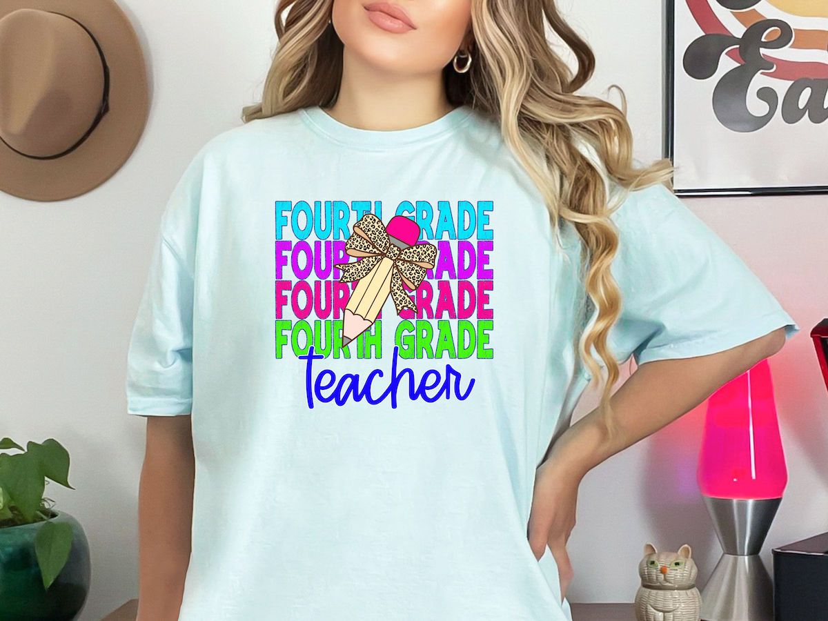 Fourth Grade Teacher Bookworm Repeat Leopard Pencil DTF Print