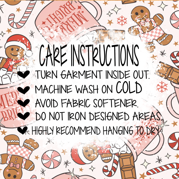 Gingerbread Doodle Christmas Washing Instructions Care Card