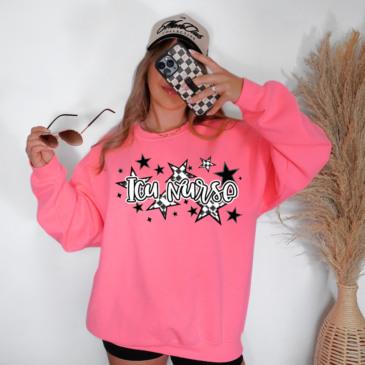 ICU Nurse Retro Checker Heart Occupations DTF Print