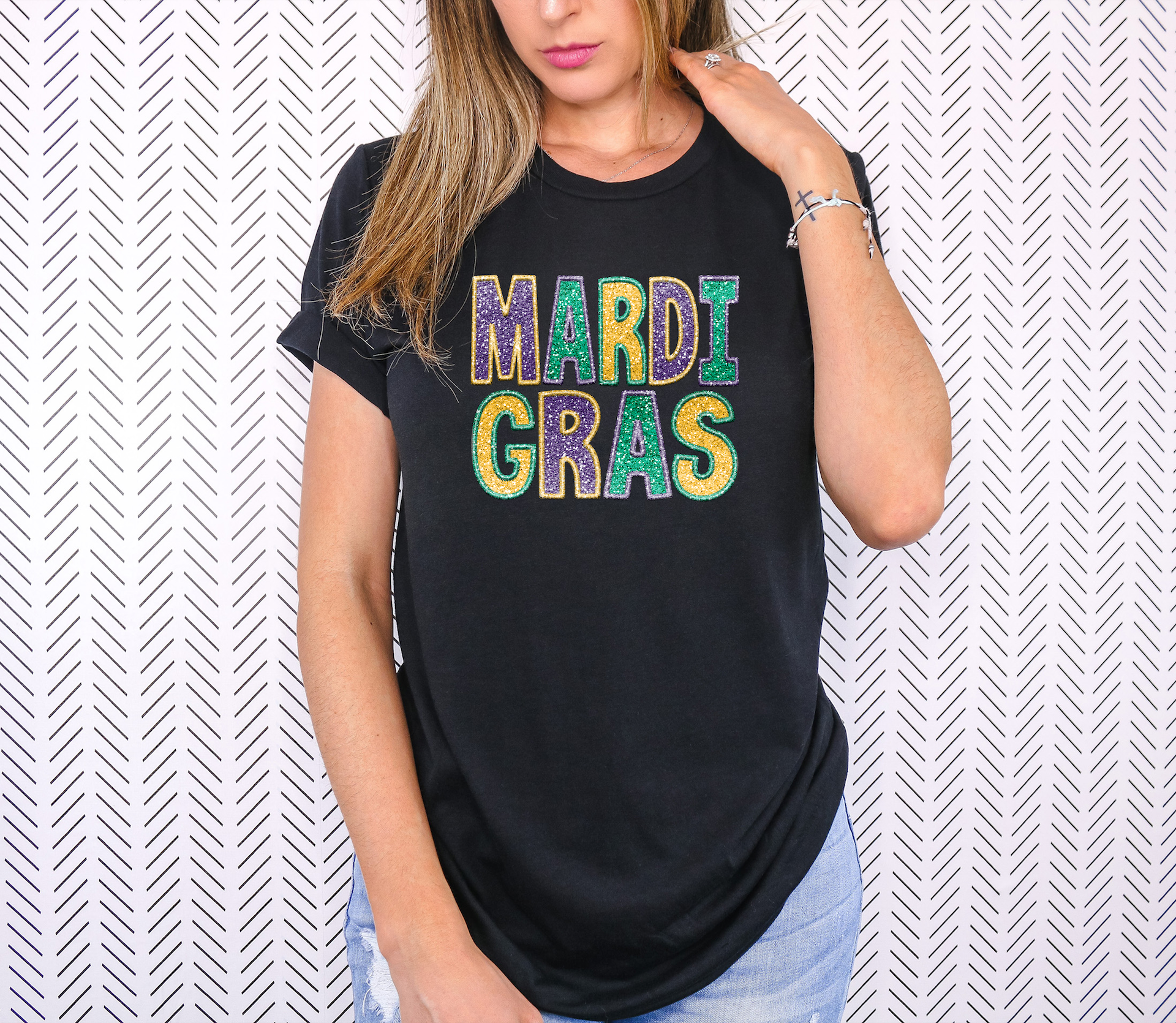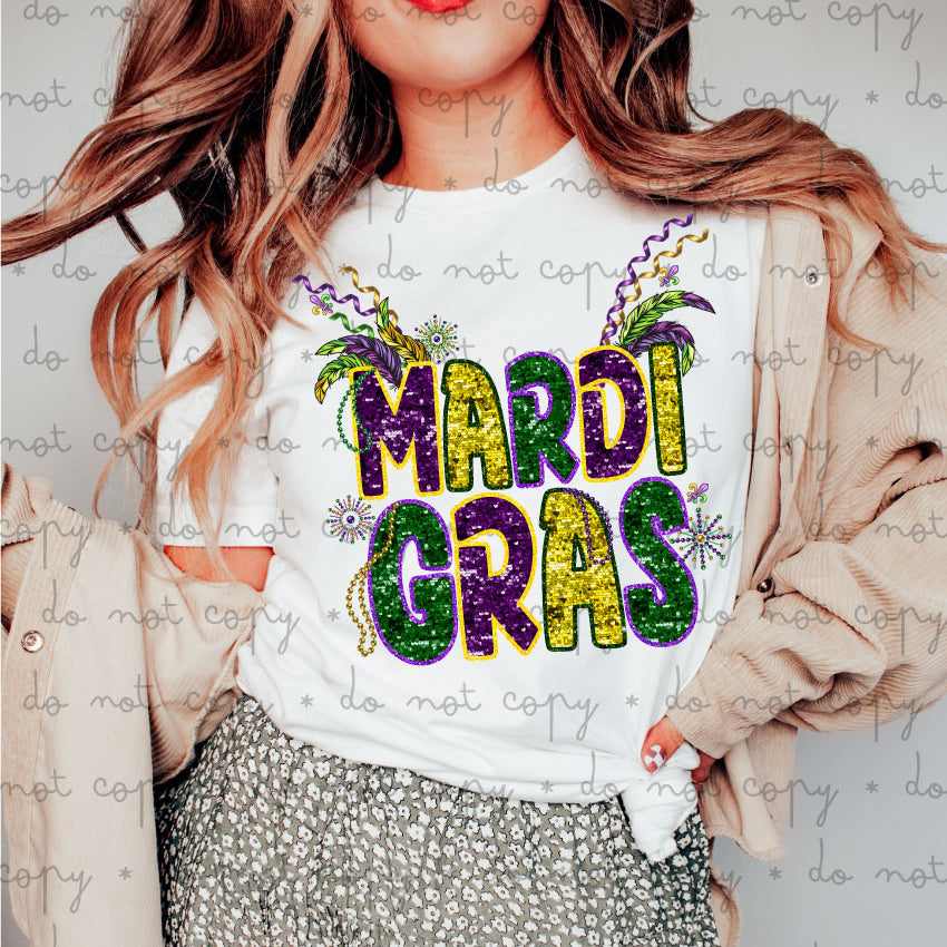 Mardi Gras Glitter Embroidery Effect DTF Print