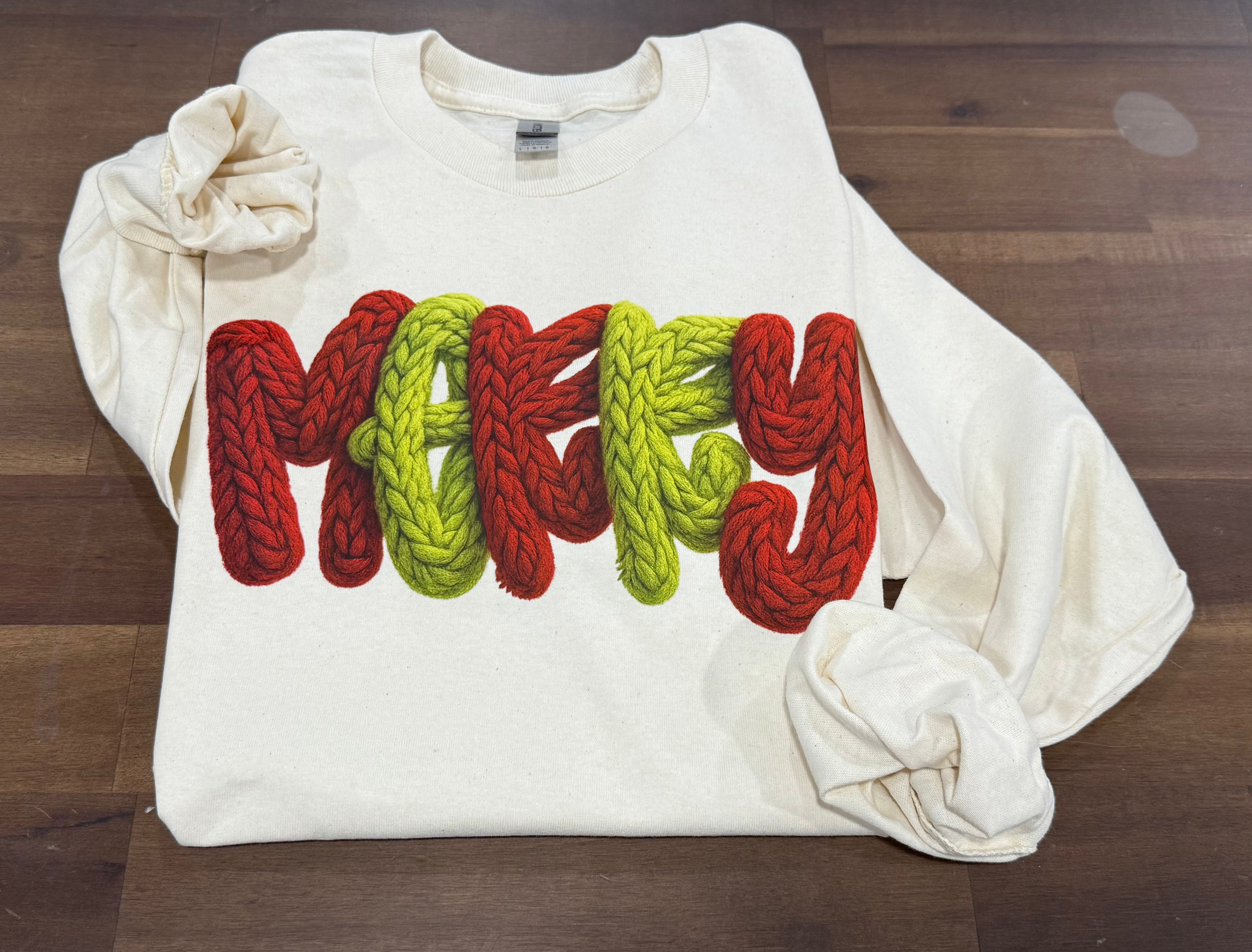 Merry Sequin Faux Embroidery Doodle DTF Print