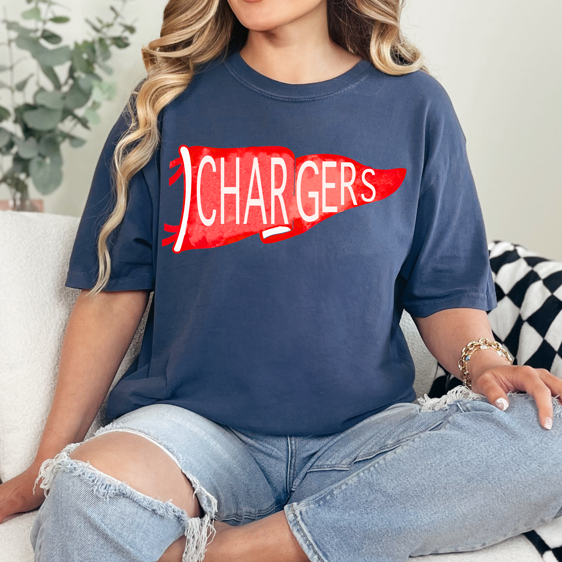 Chargers Retro Bolt Checker Teams Neon Outline DTF Print