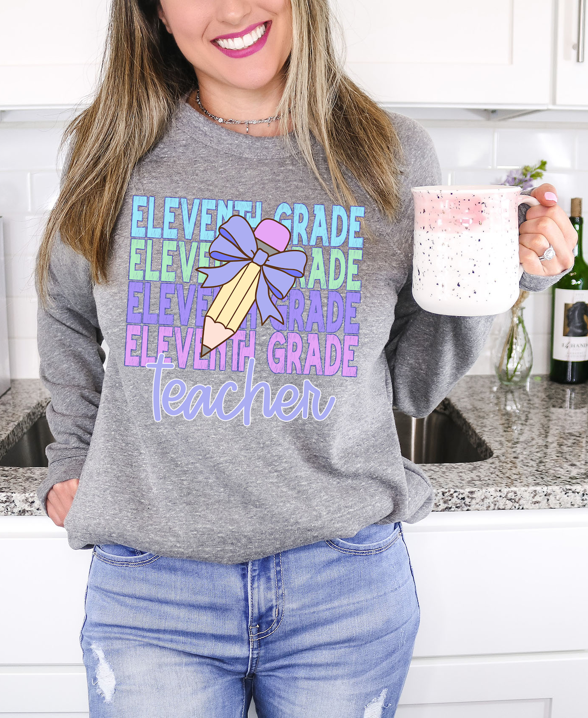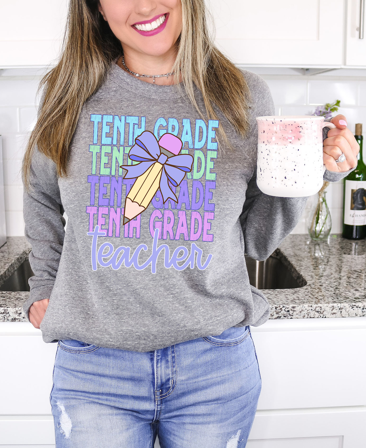 Back To School Repeat Pastel Purple Pencil Middle High Teacher DTF Print