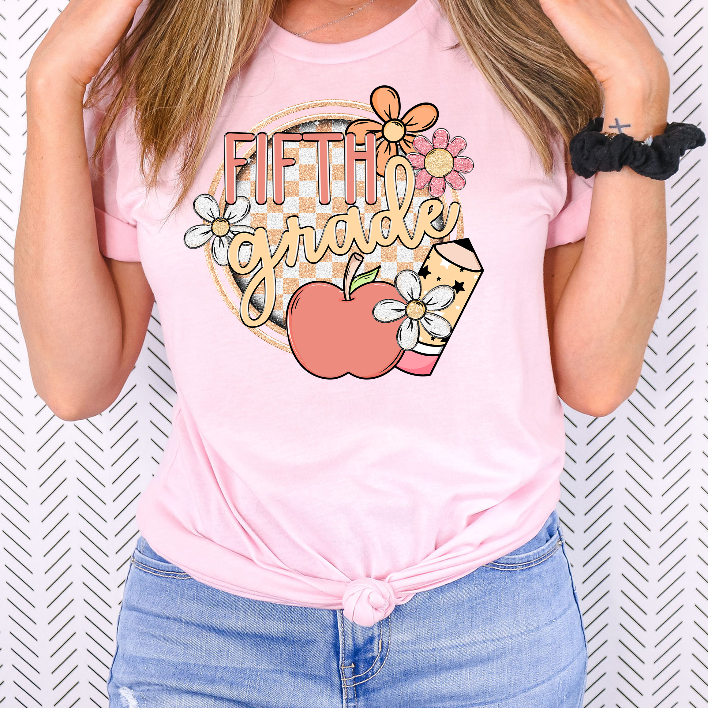 Back To School Repeat Pastel Checker Pencil Middle High DTF Print