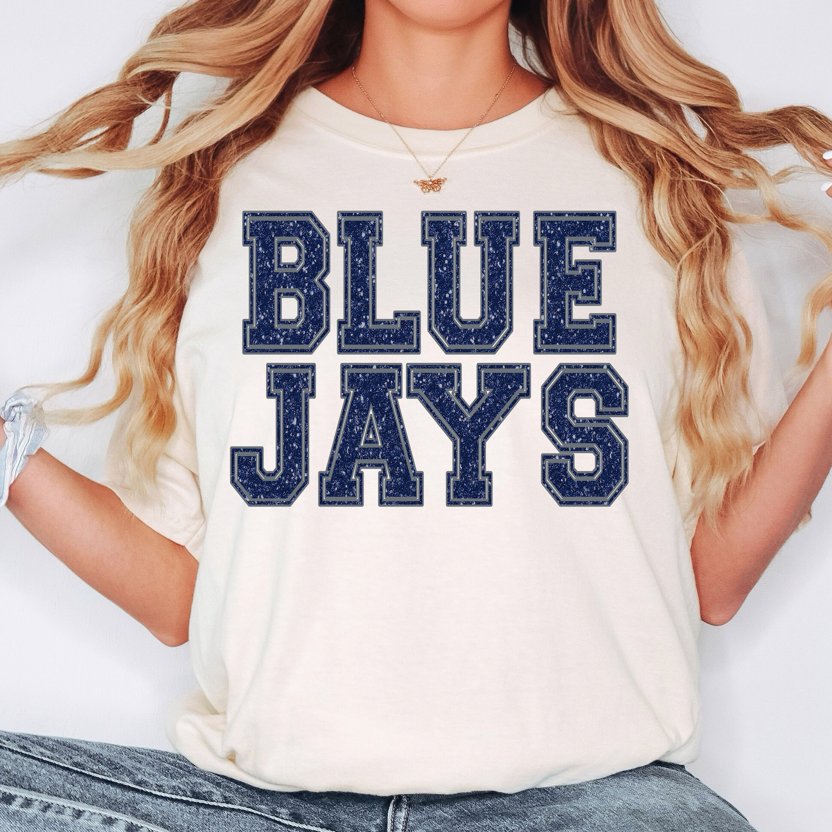 Ashland Greenwood Bluejays Varsity Glitter Effect DTF Print