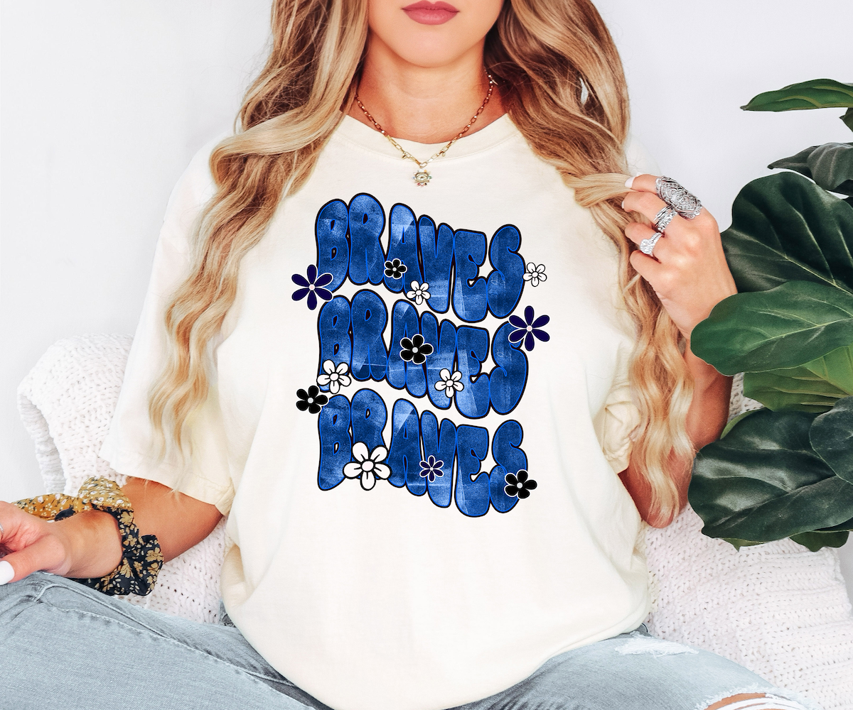 Braves Retro Bolt Checker Teams Neon Outlines DTF Print