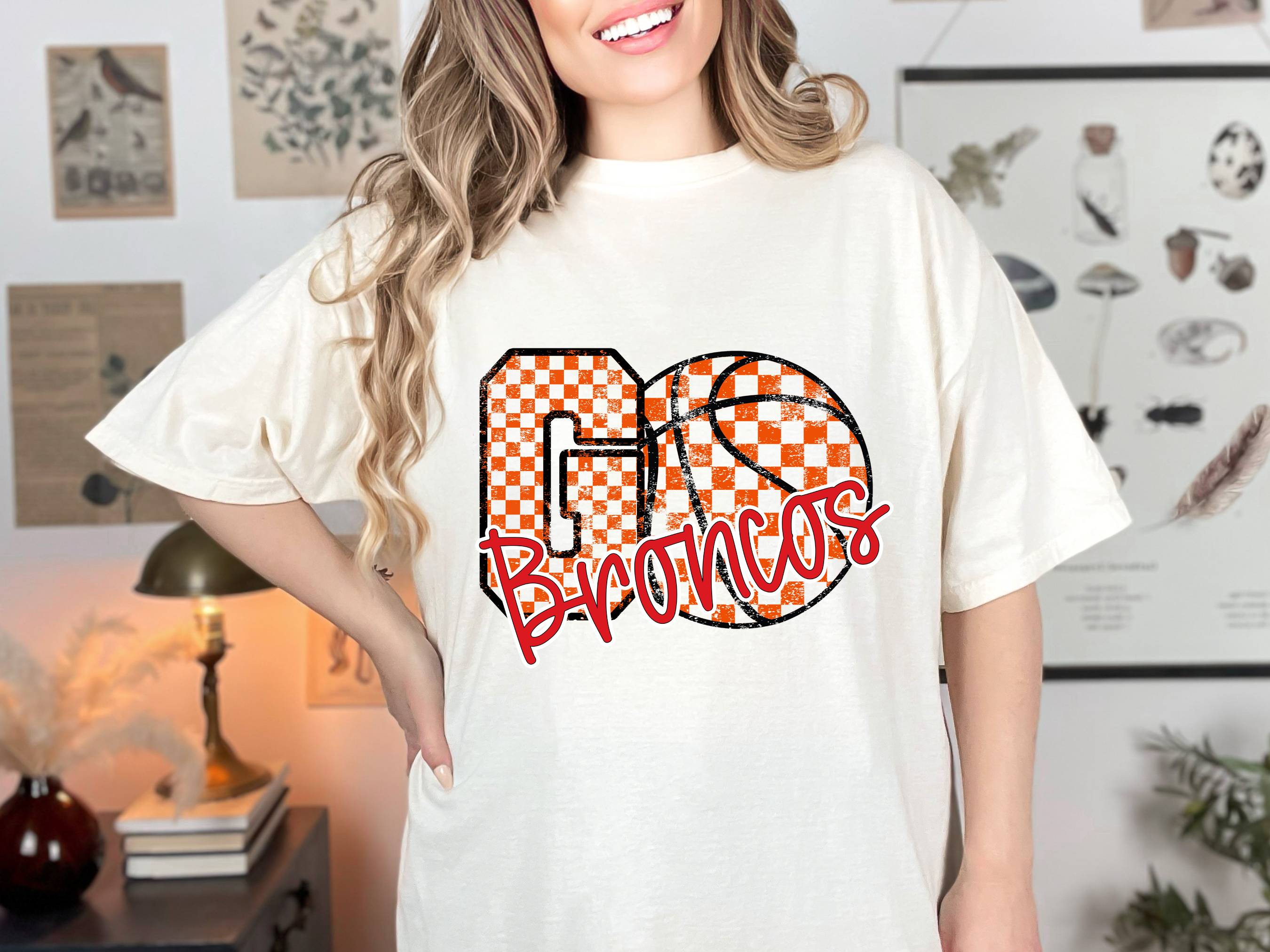 Broncos Go Basketball Checker DTF Print