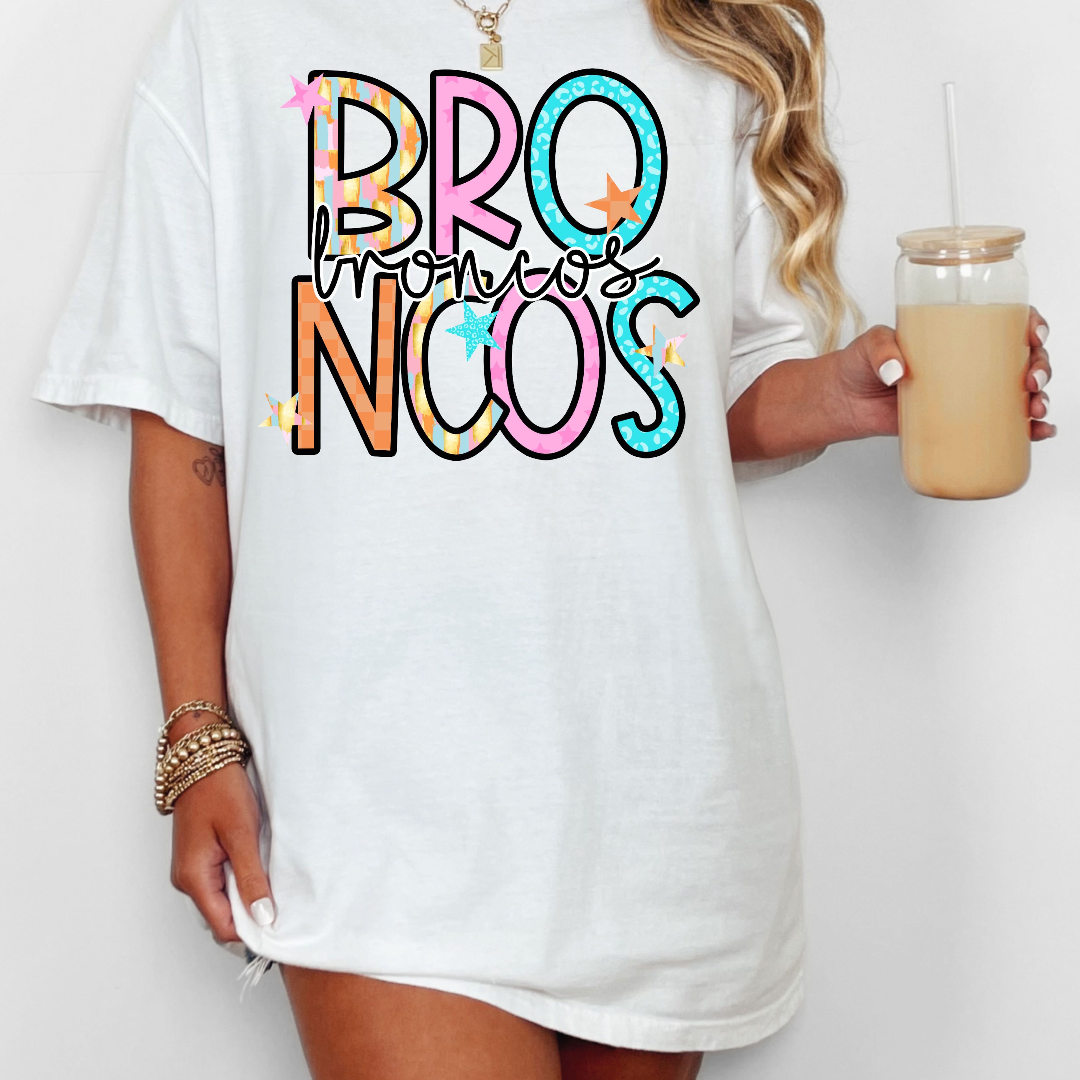 Broncos Retro Bolt Checker Teams Neon Outline DTF Print