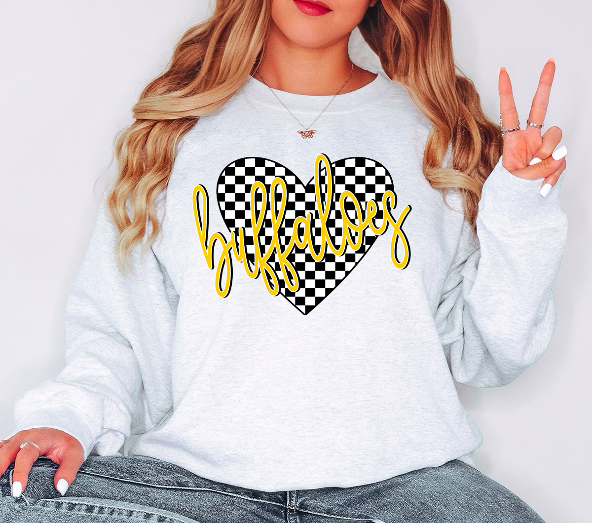 Buffaloes Retro Checker Heart DTF Print