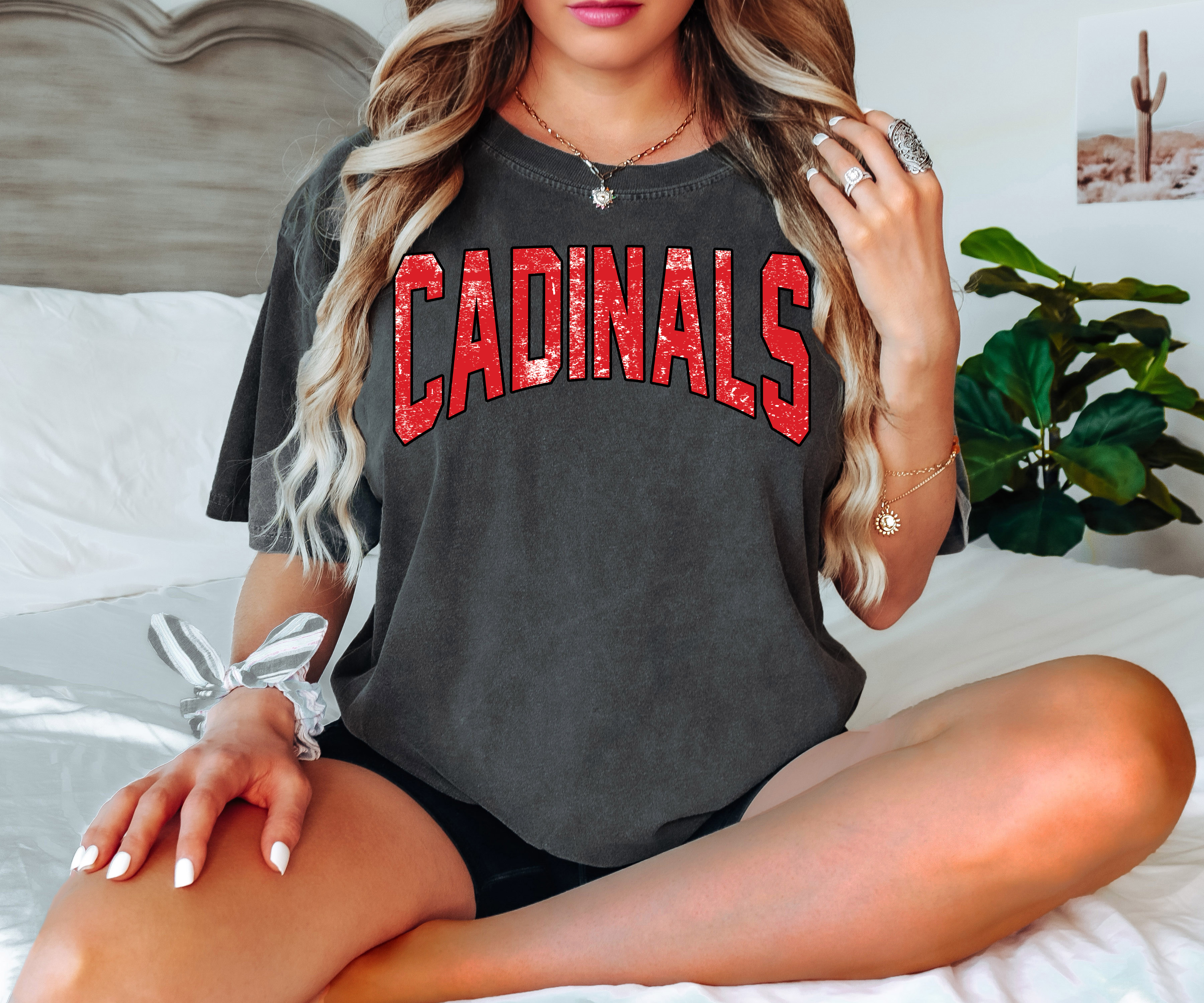 Go Cardinals Baseball Faux Glitter DTF Mock