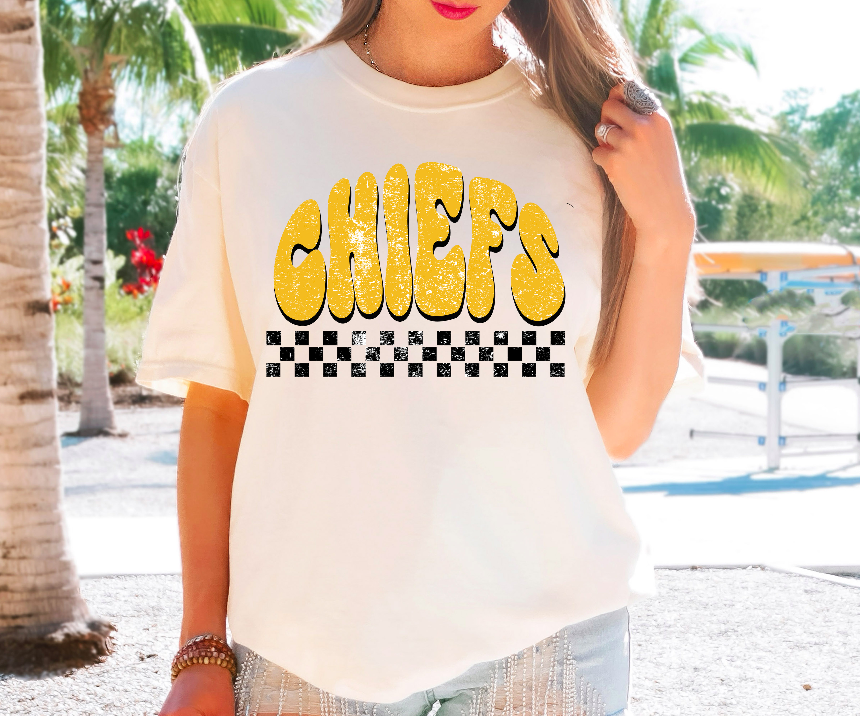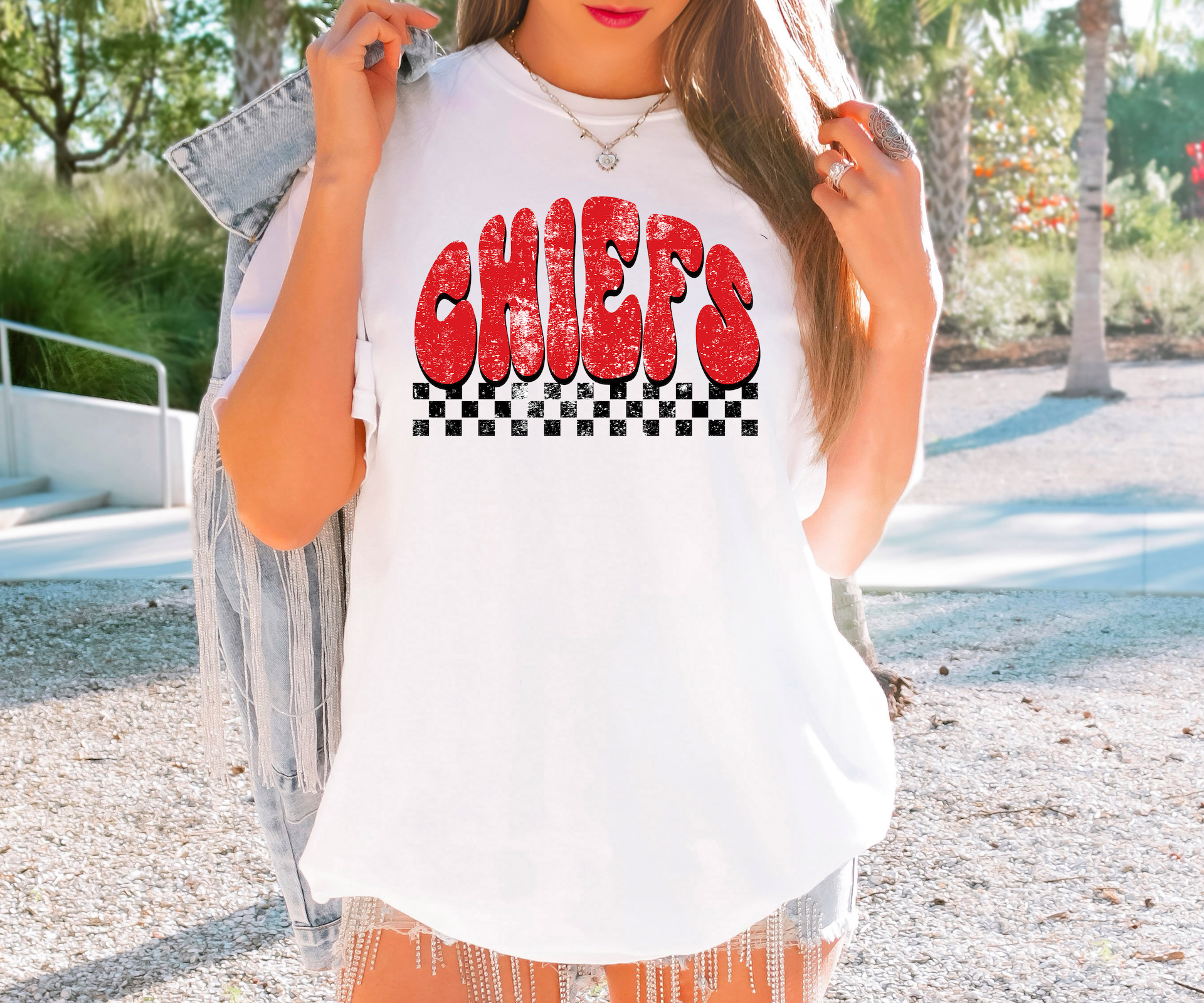 Chiefs Retro Bolt Checker Teams Neon Outline DTF Print