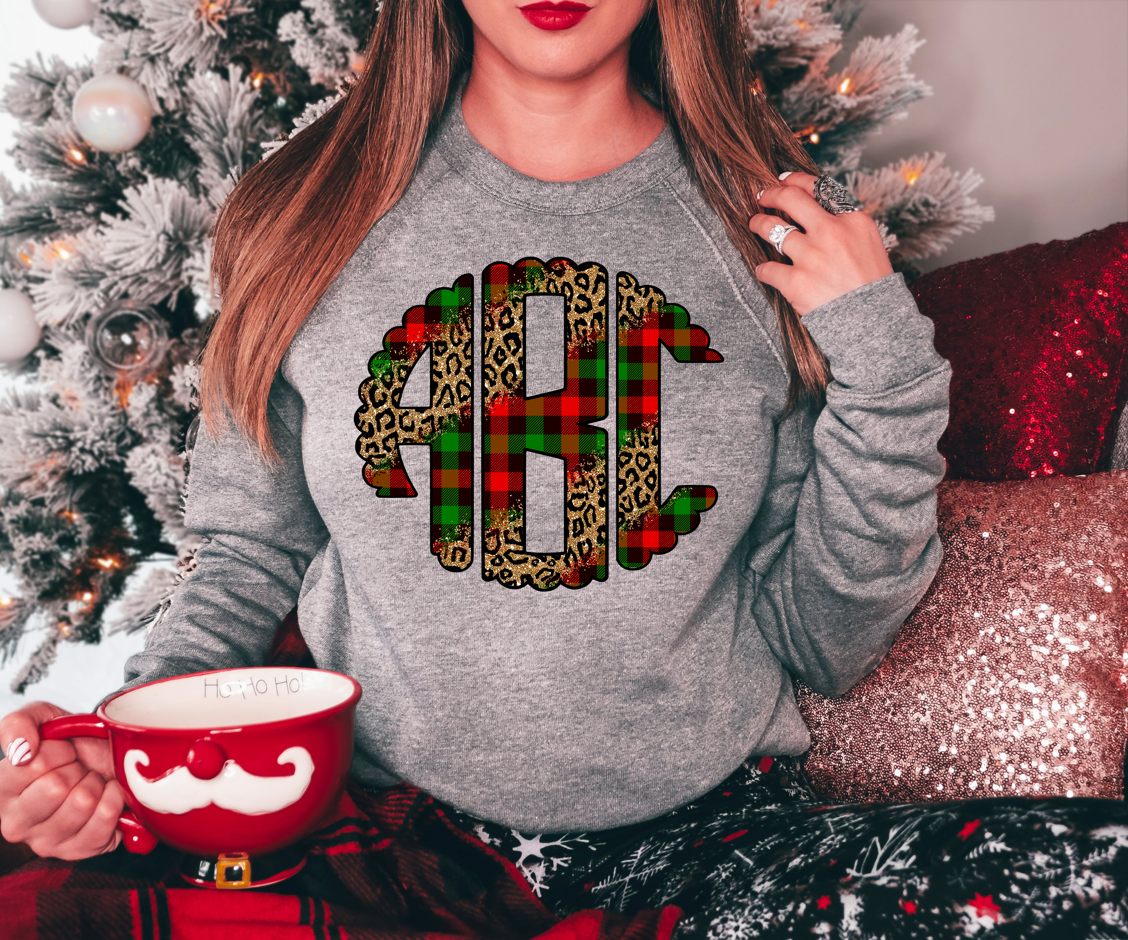 Custom Glitter Effect Leopard Plaid Monogram DTF Print