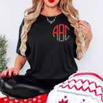 Custom Red Glitter Effect Leopard Monogram DTF Print