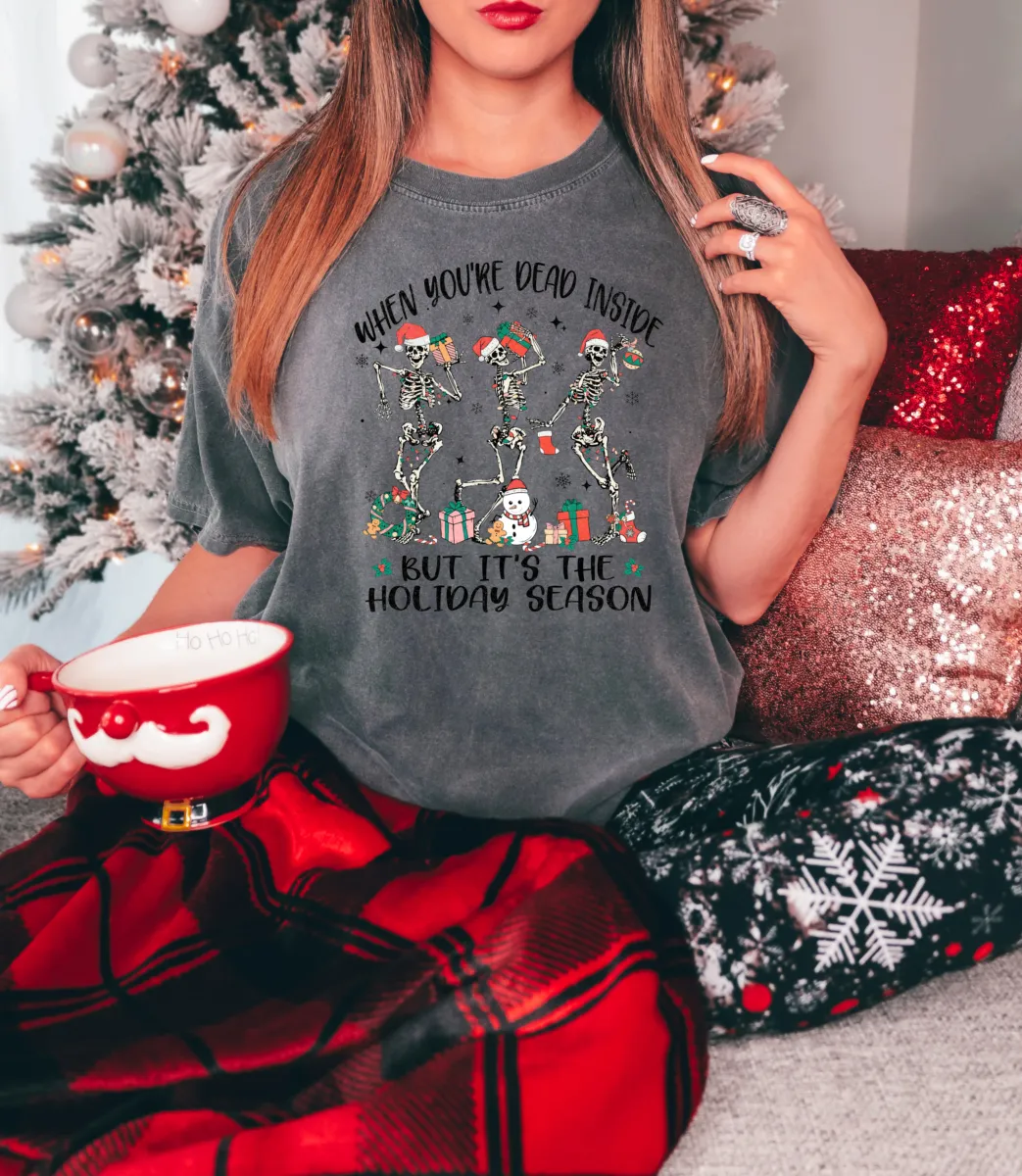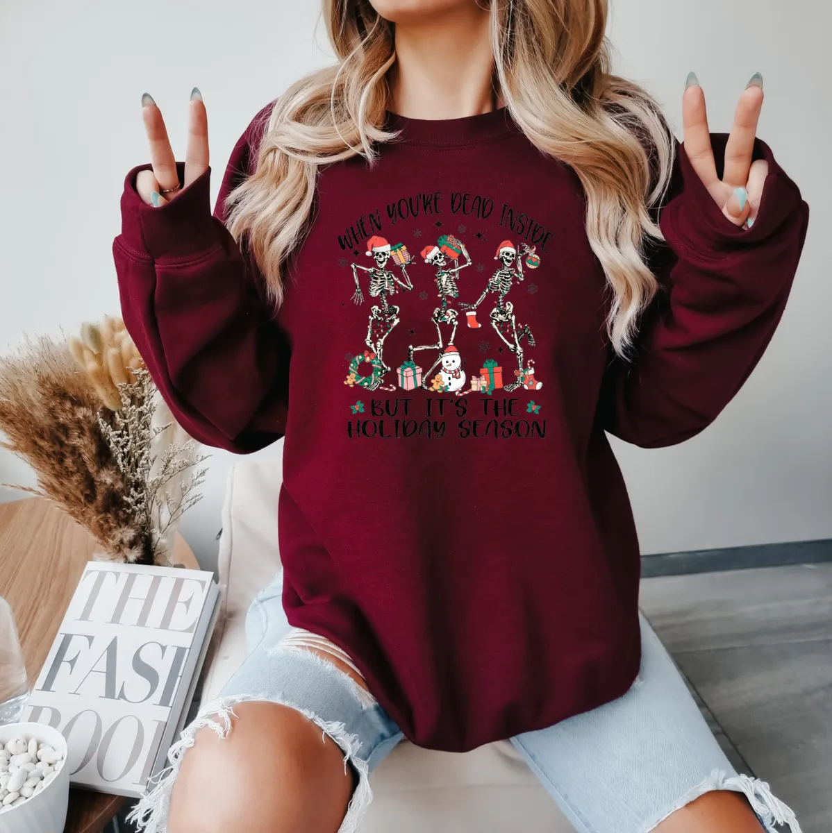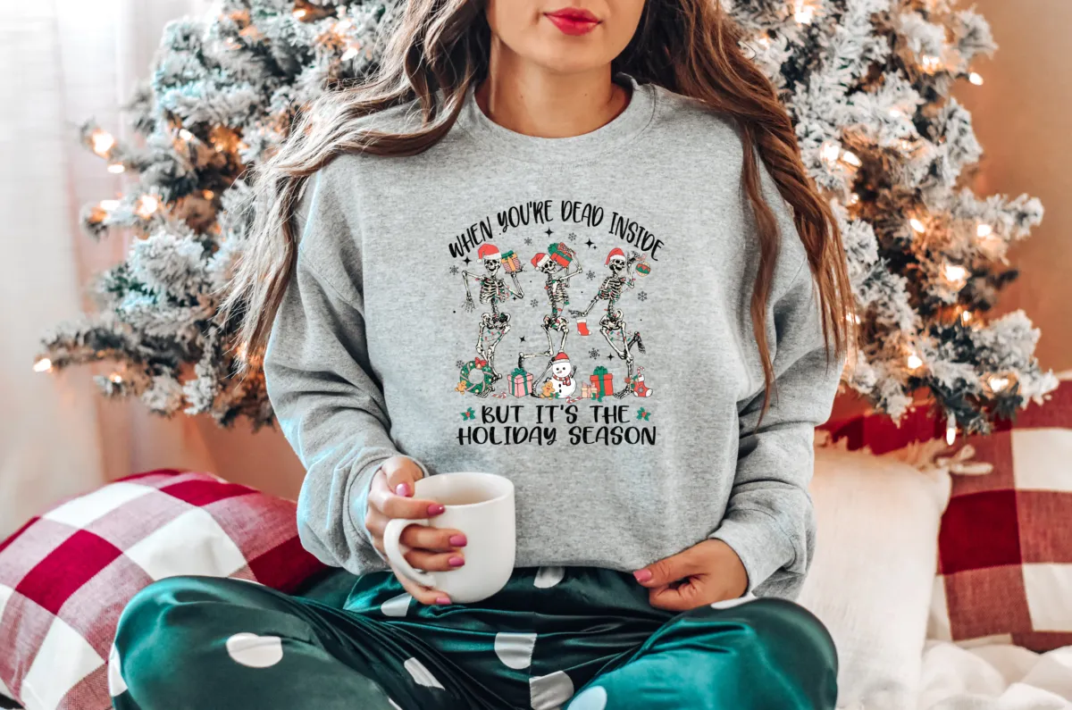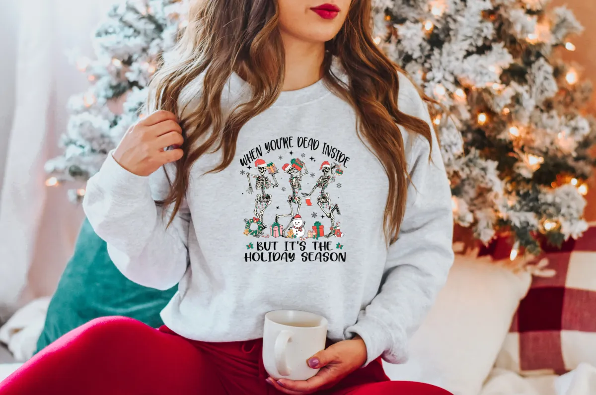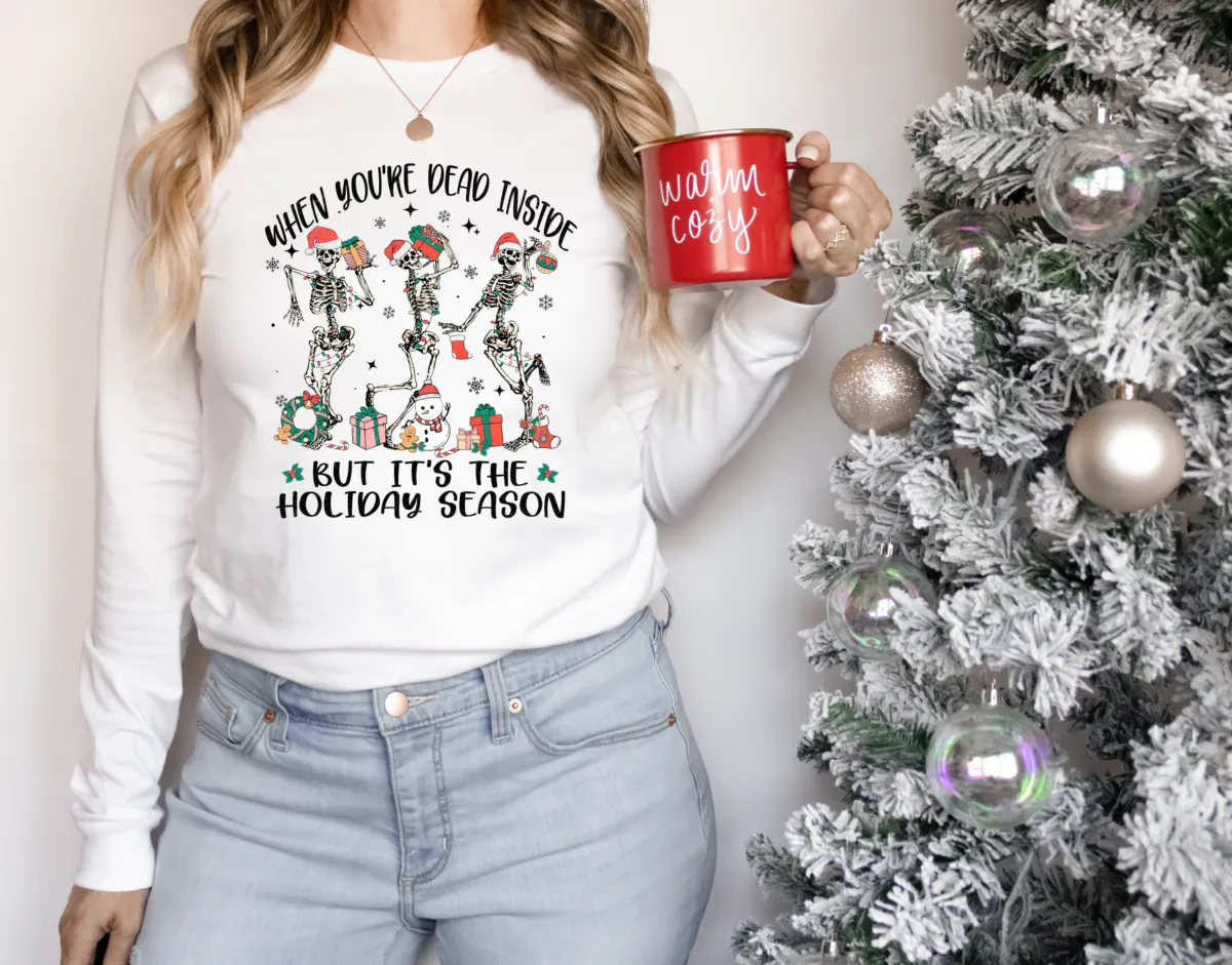 When Youre Dead Inside but its the Holiday Season Dancing Skeletons DTF Print