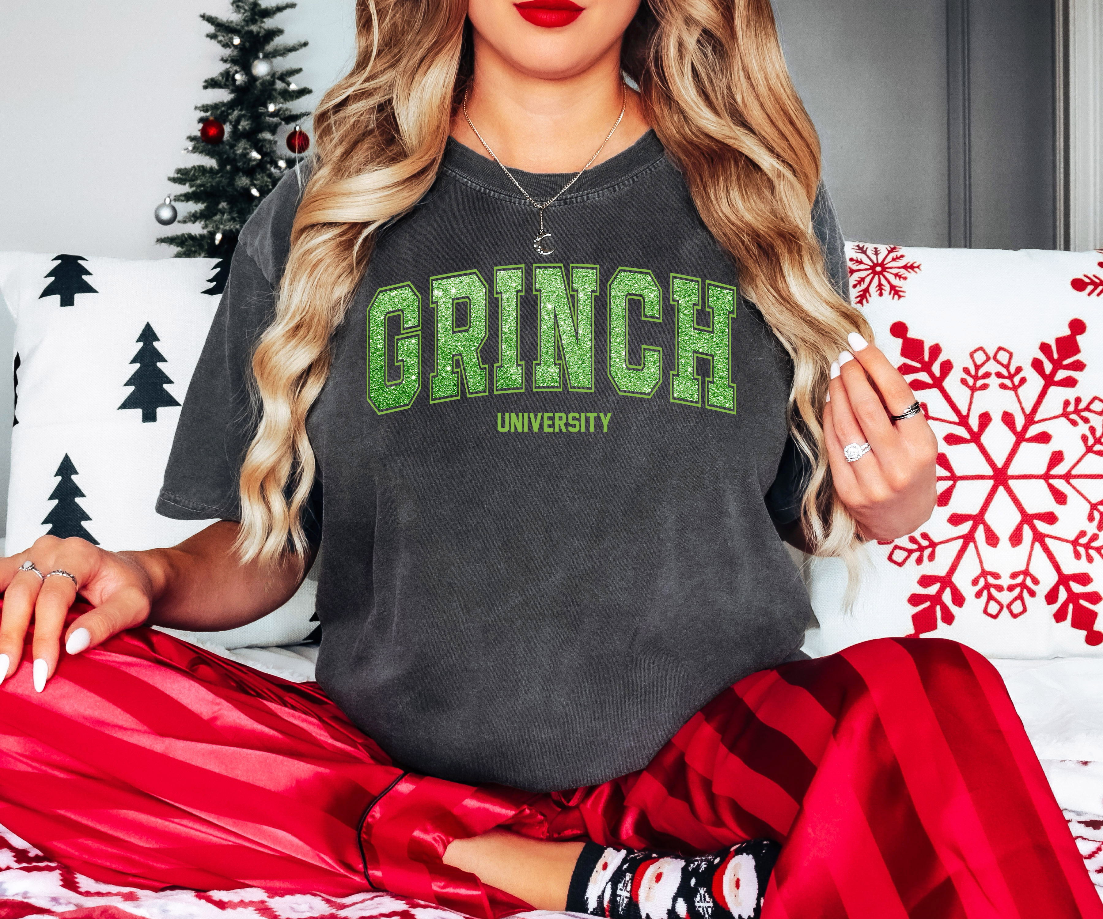 Grinch University Glitter Effect DTF Print