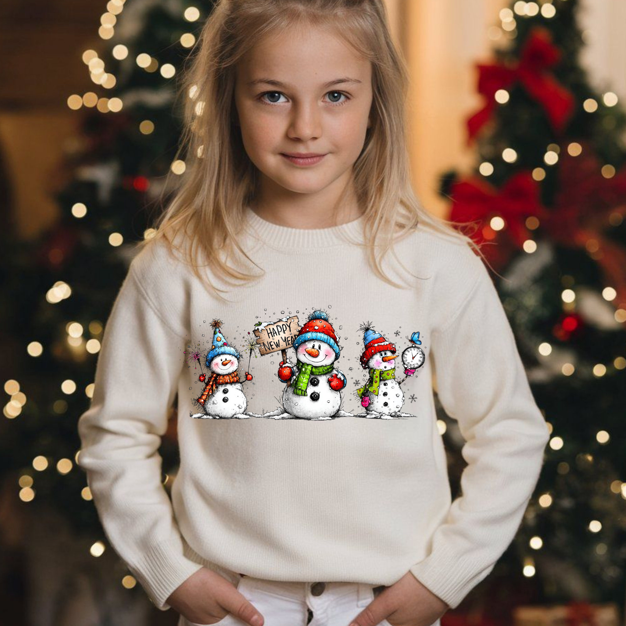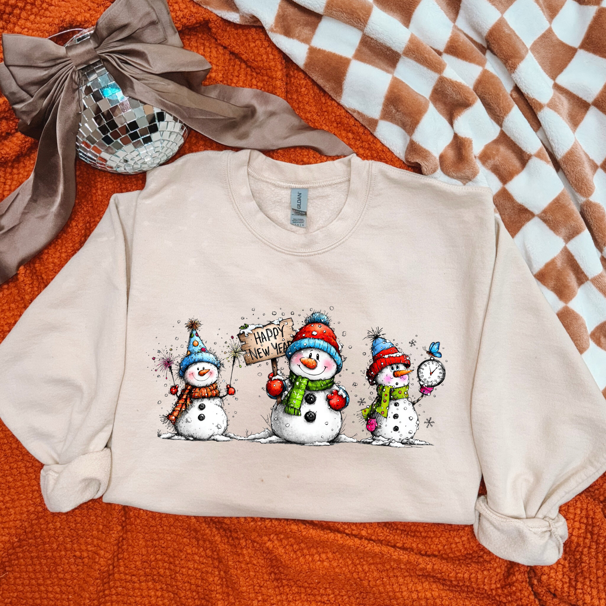 Happy New Year Snowmen Trio DTF Print