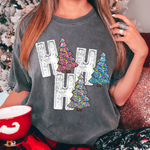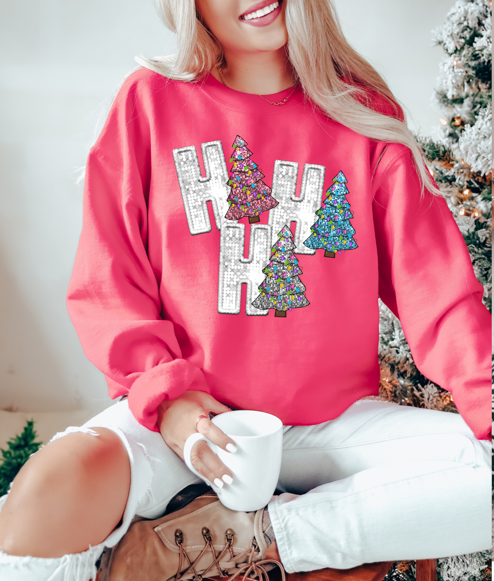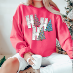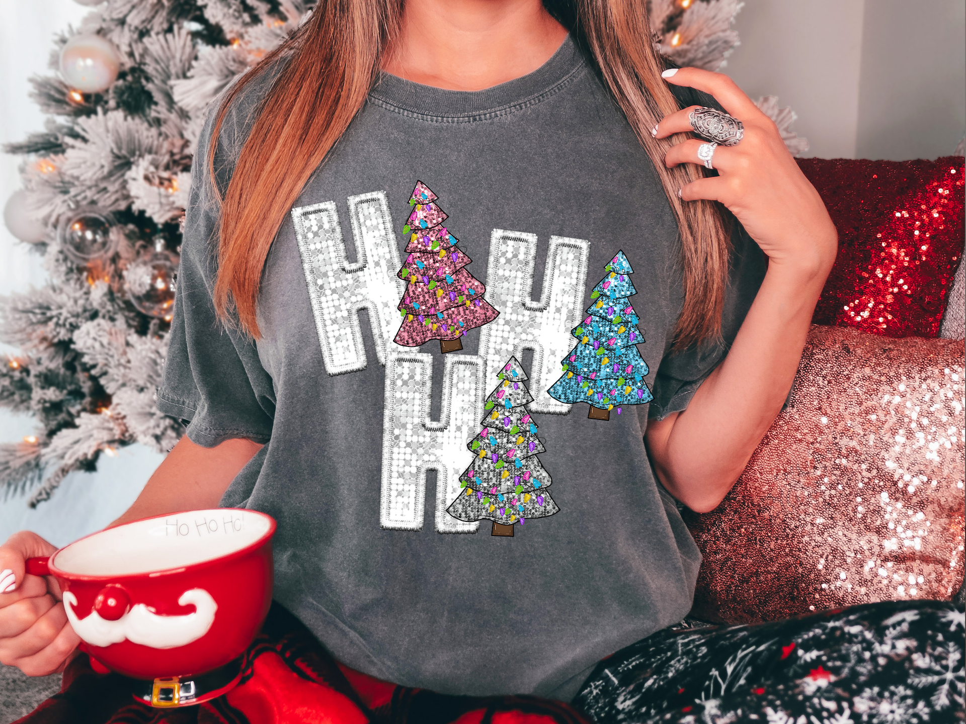 Ho Ho Ho Trees Glitter Embroidery Effect DTF Print