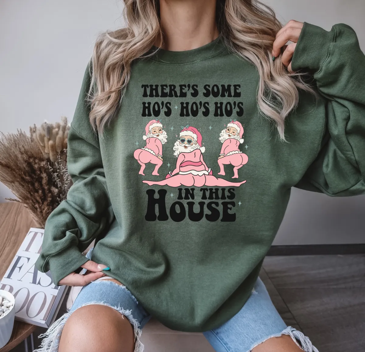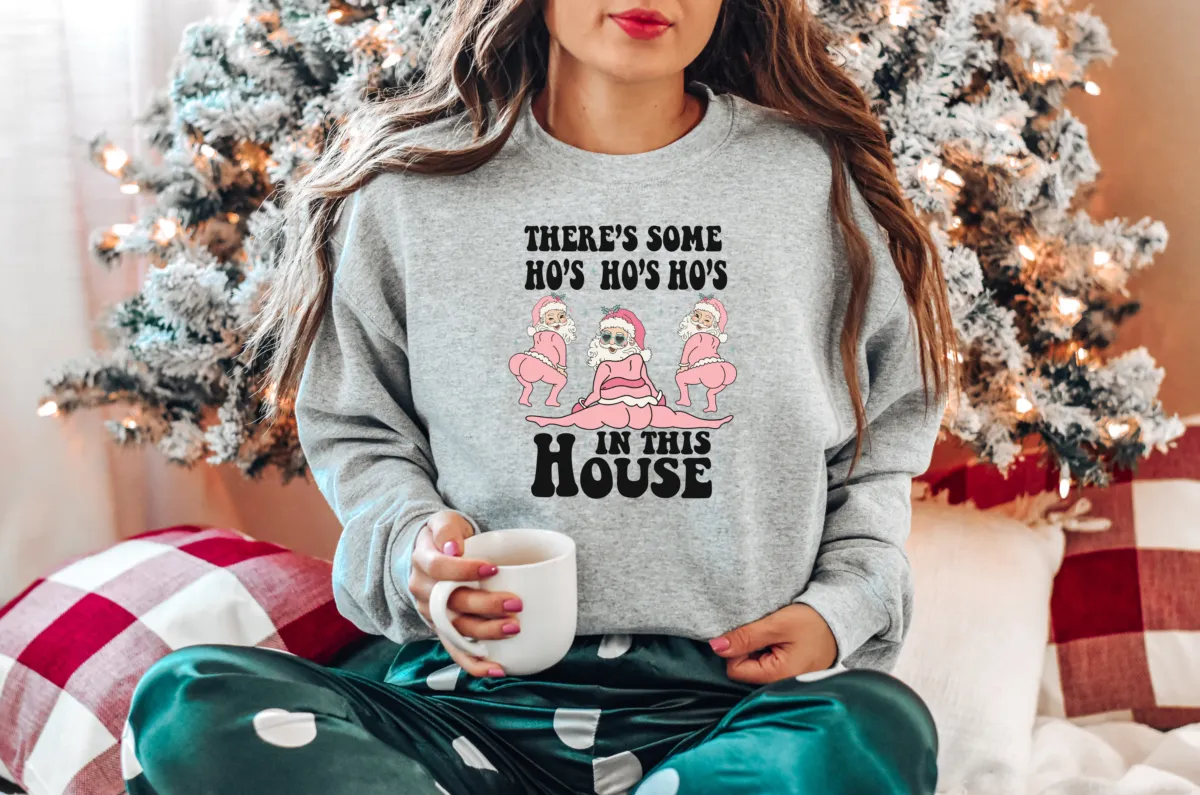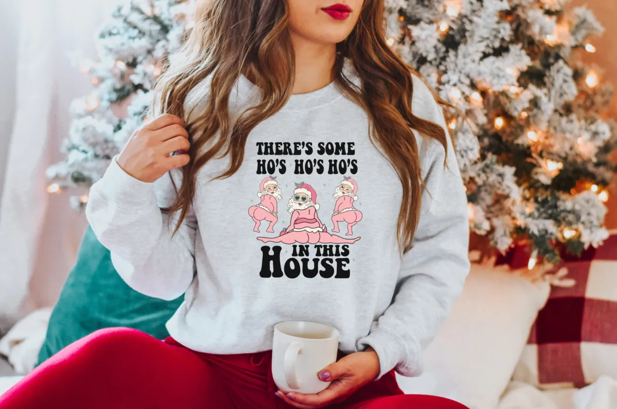 Hos in the House Pink Santa DTF Print