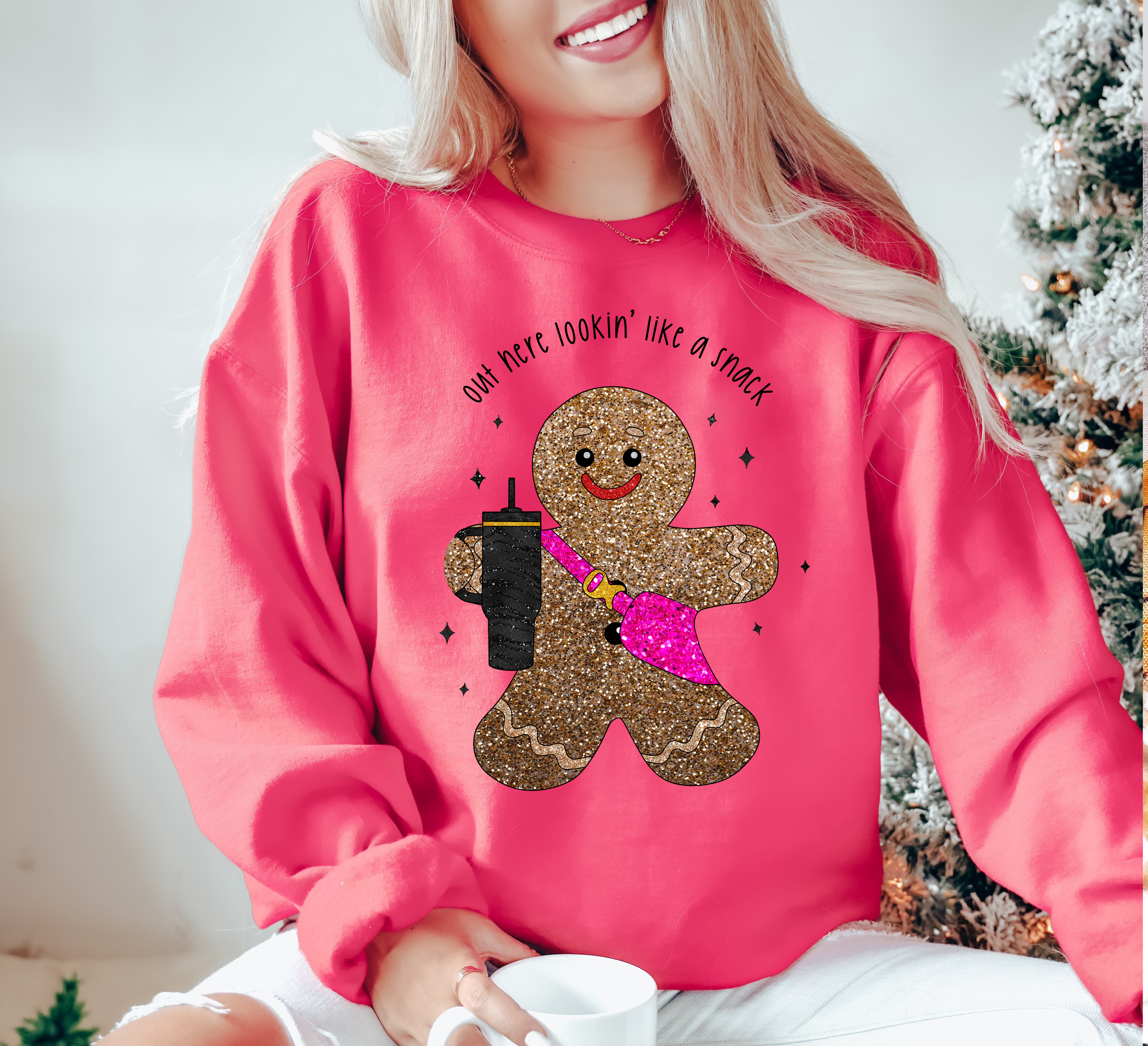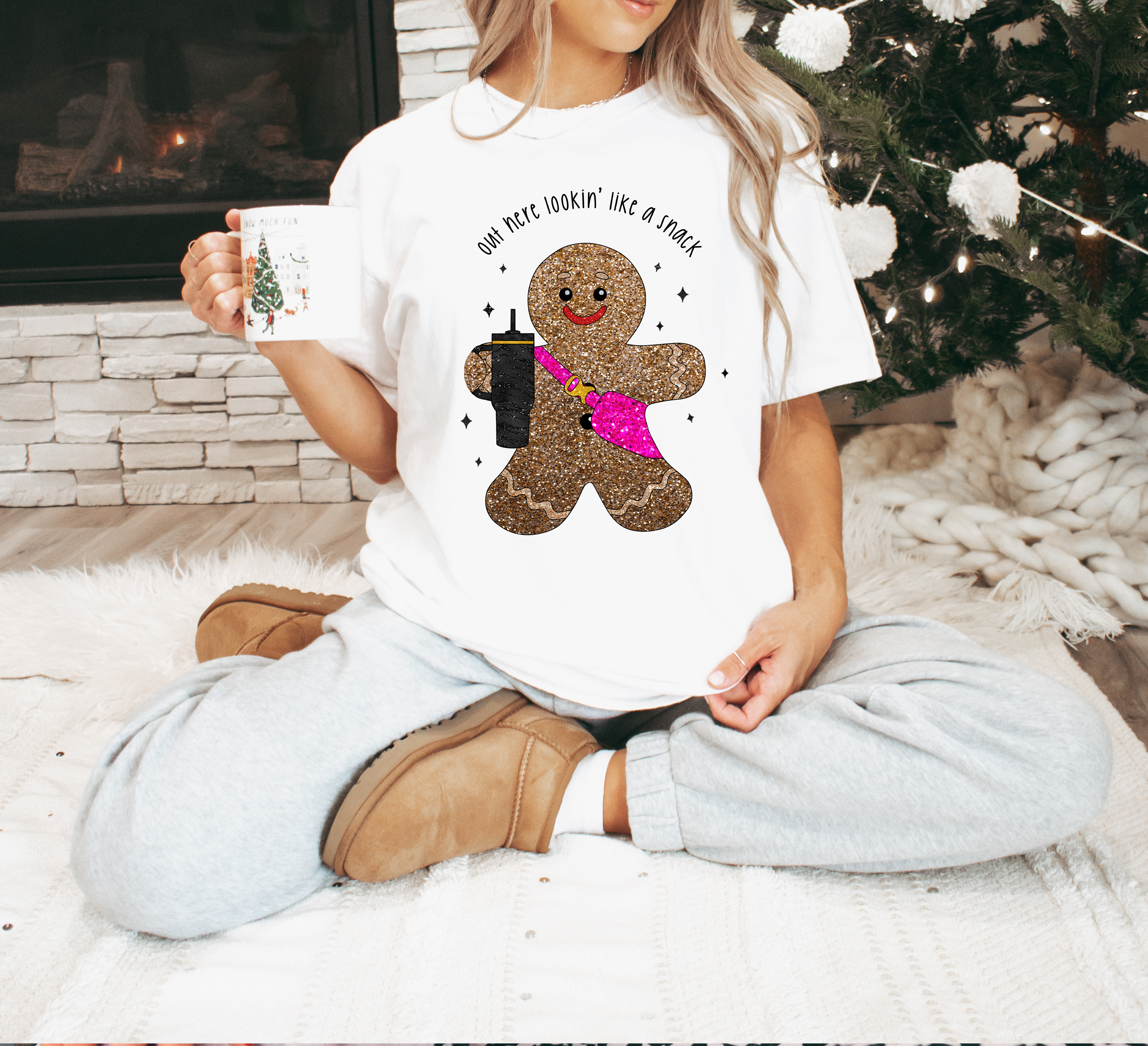 Lookin Like a Snack Gingerbread Man Glitter Embroidery Effect DTF Print
