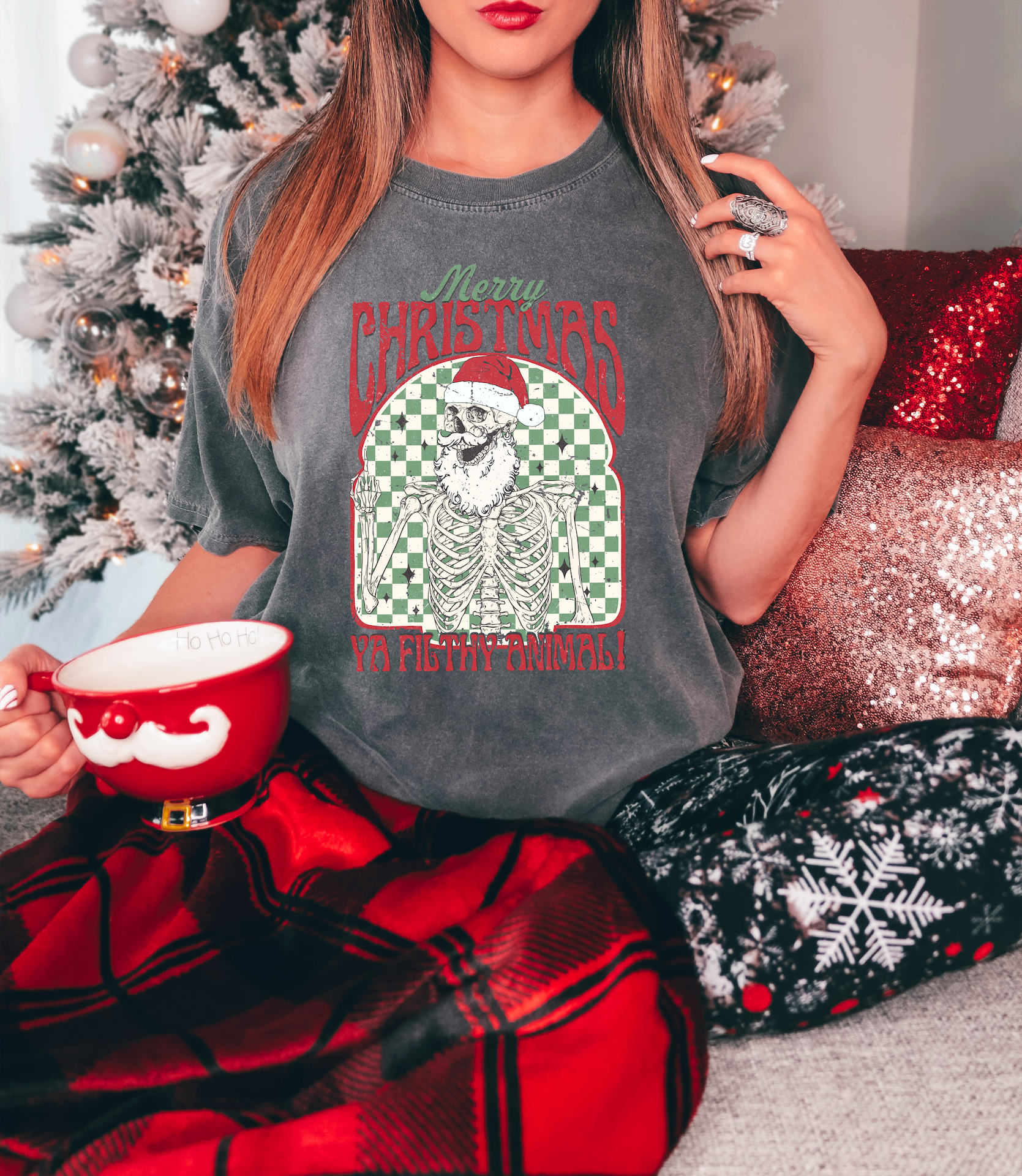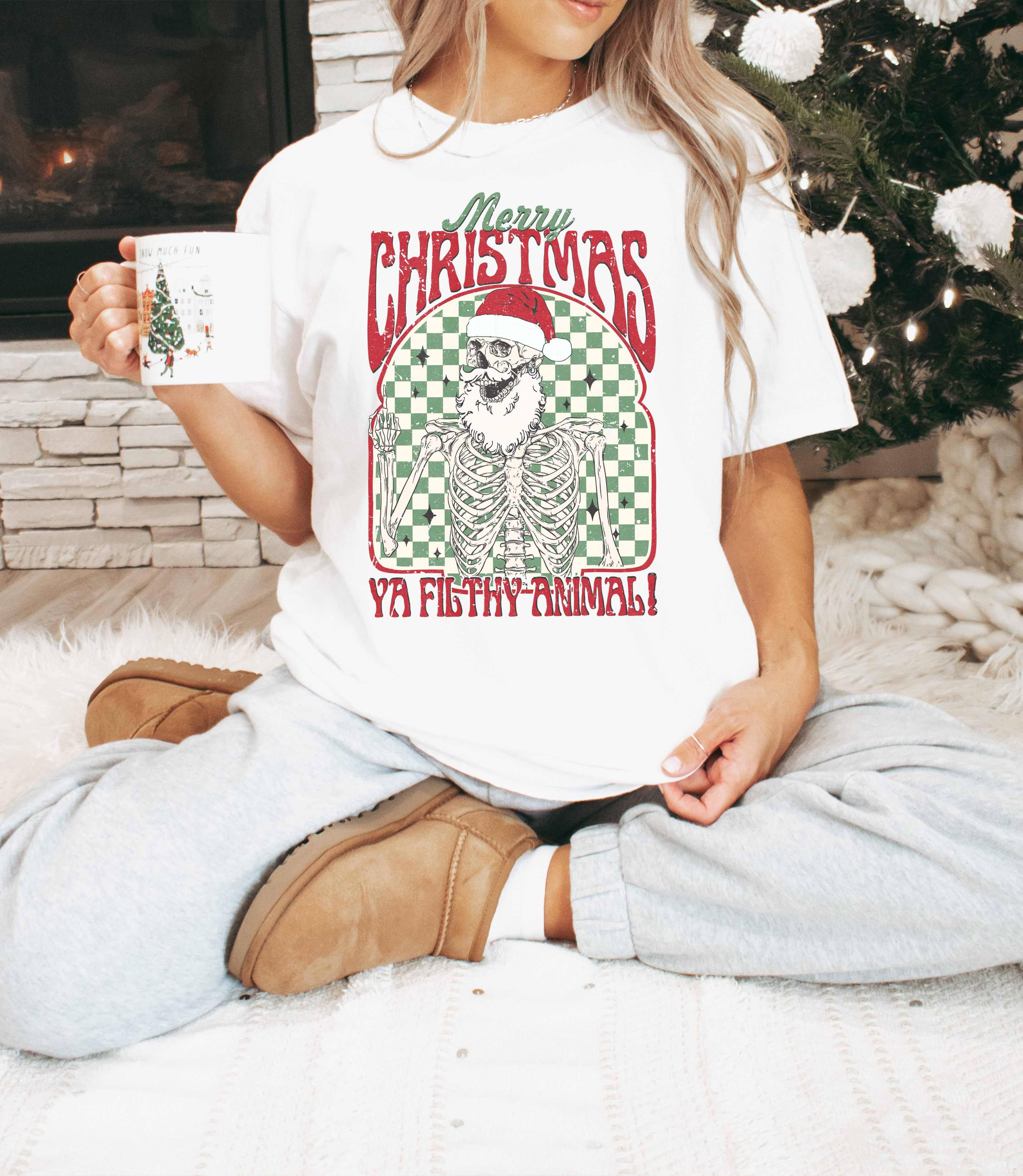 Merry Christmas Ya Filthy Animal Santa Skeleton DTF Print