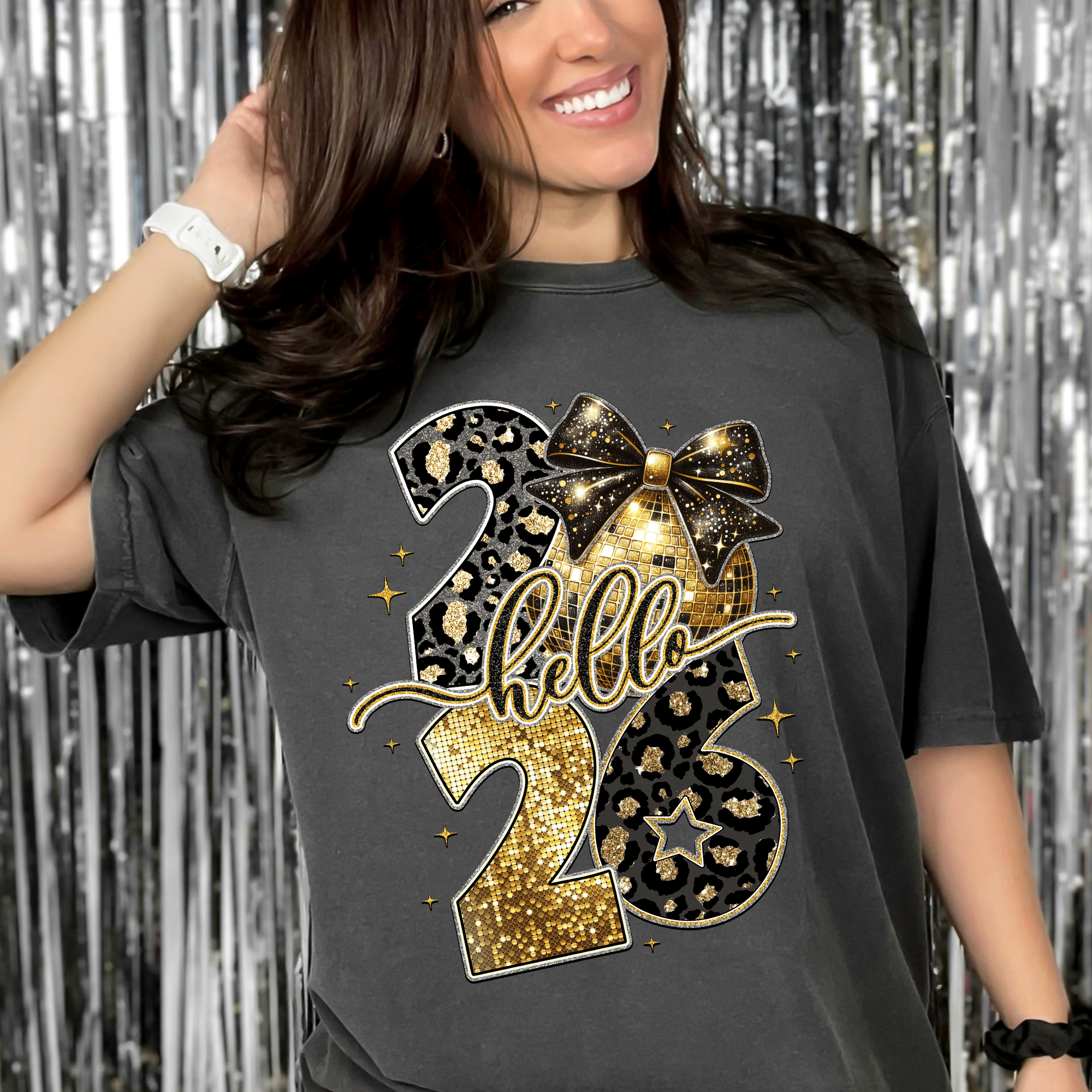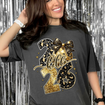 Leopard Black Gold Hello 2026 DTF Print