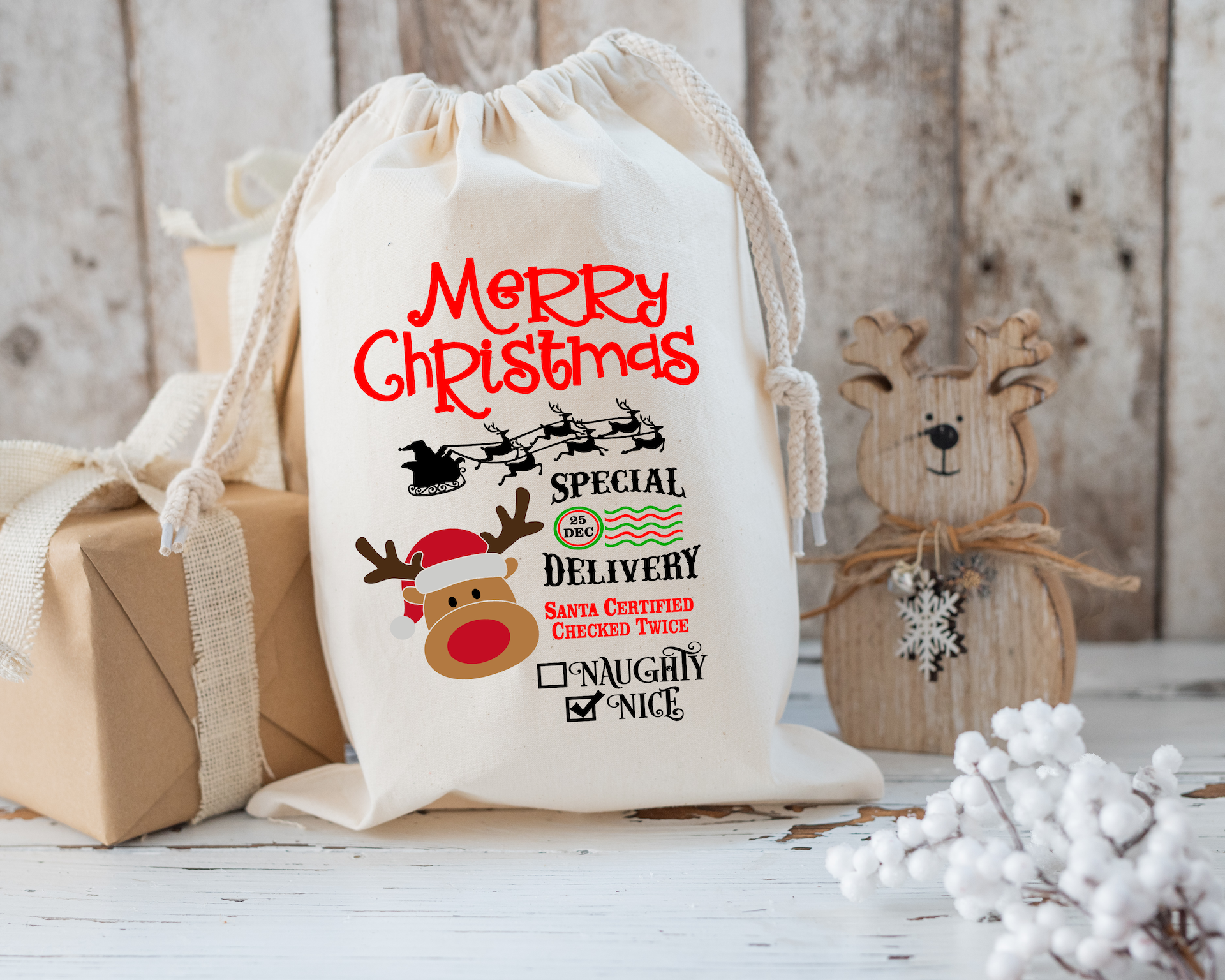 Personalized Merry Christmas Reindeer Santa Sack DTF Print