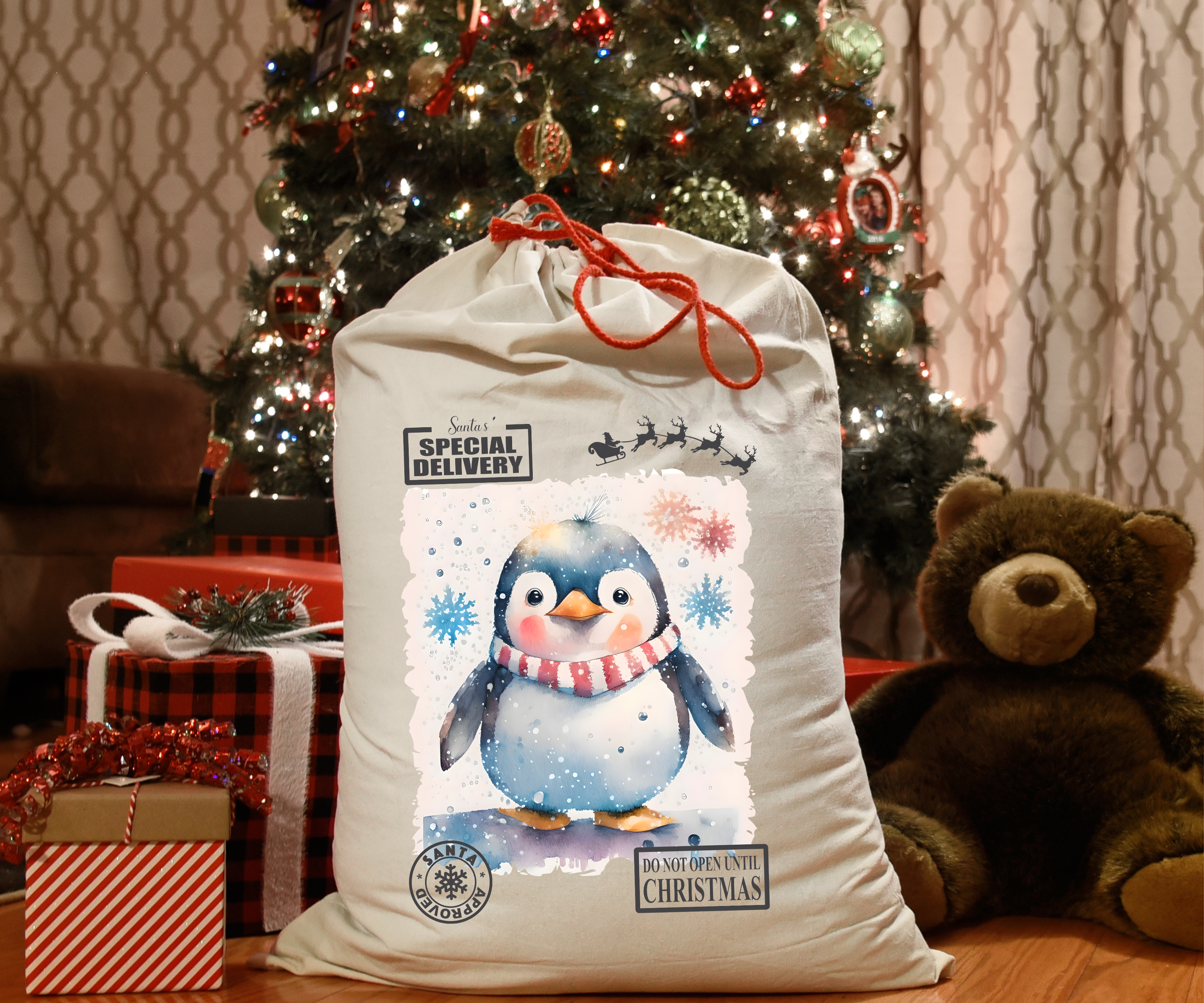 Personalized Penguin Santa Sack DTF Print
