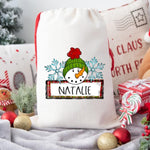 Personalized Snowman Name Trio GREEN Santa Sack DTF Print