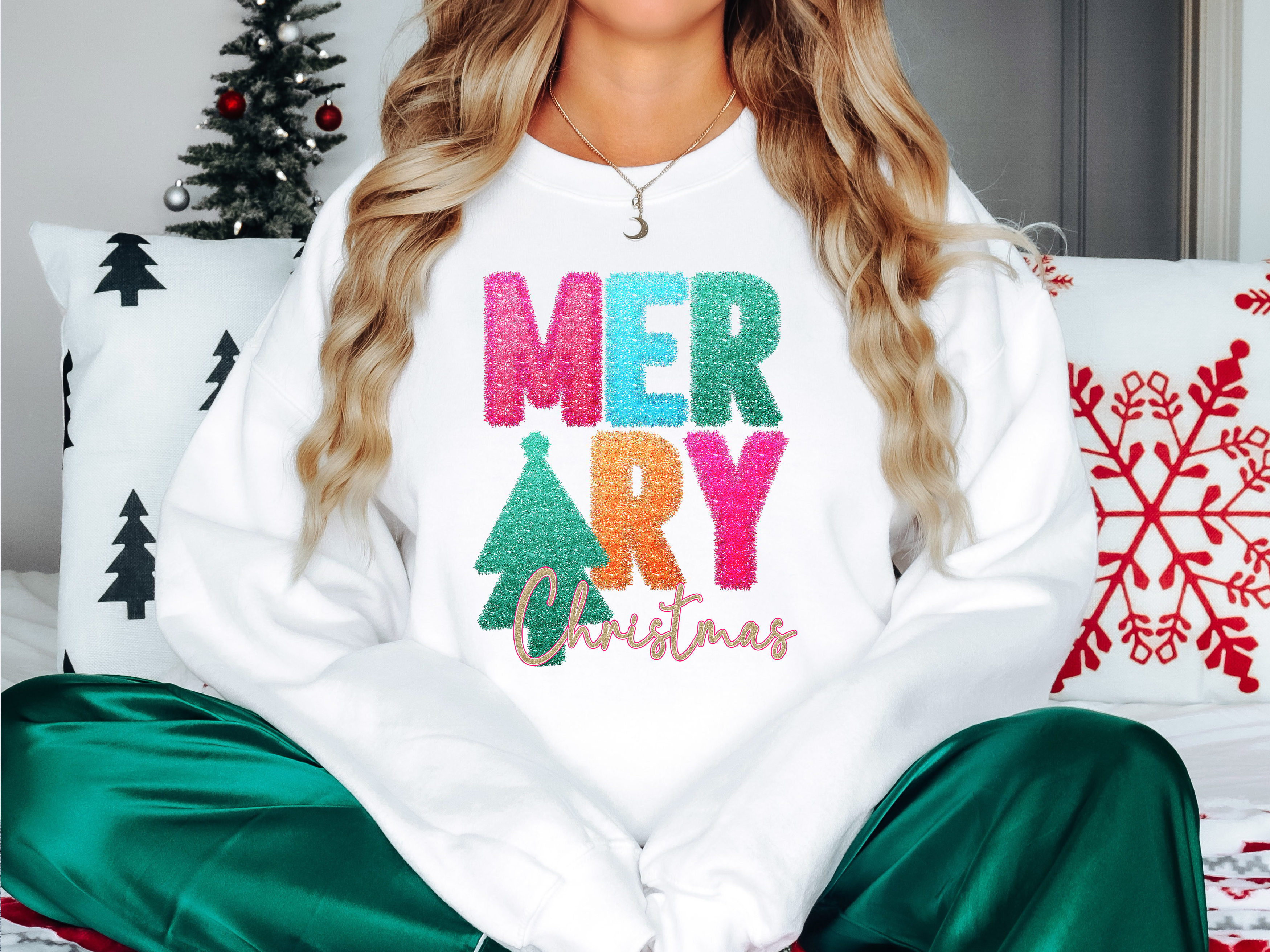 Merry Christmas Tinsel Effect DTF Print