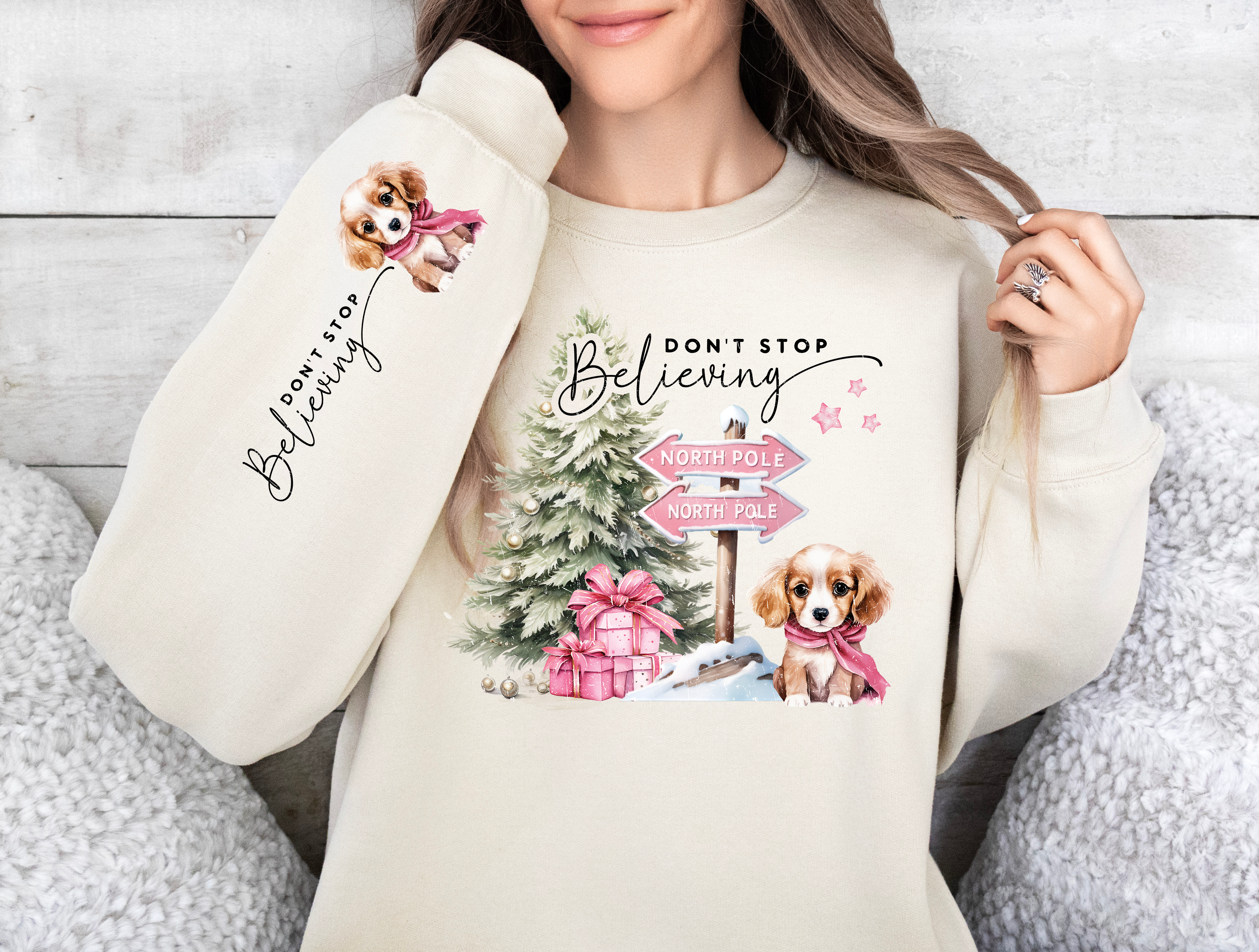 Dont Stop Believing Vintage Christmas Puppy DTF Print