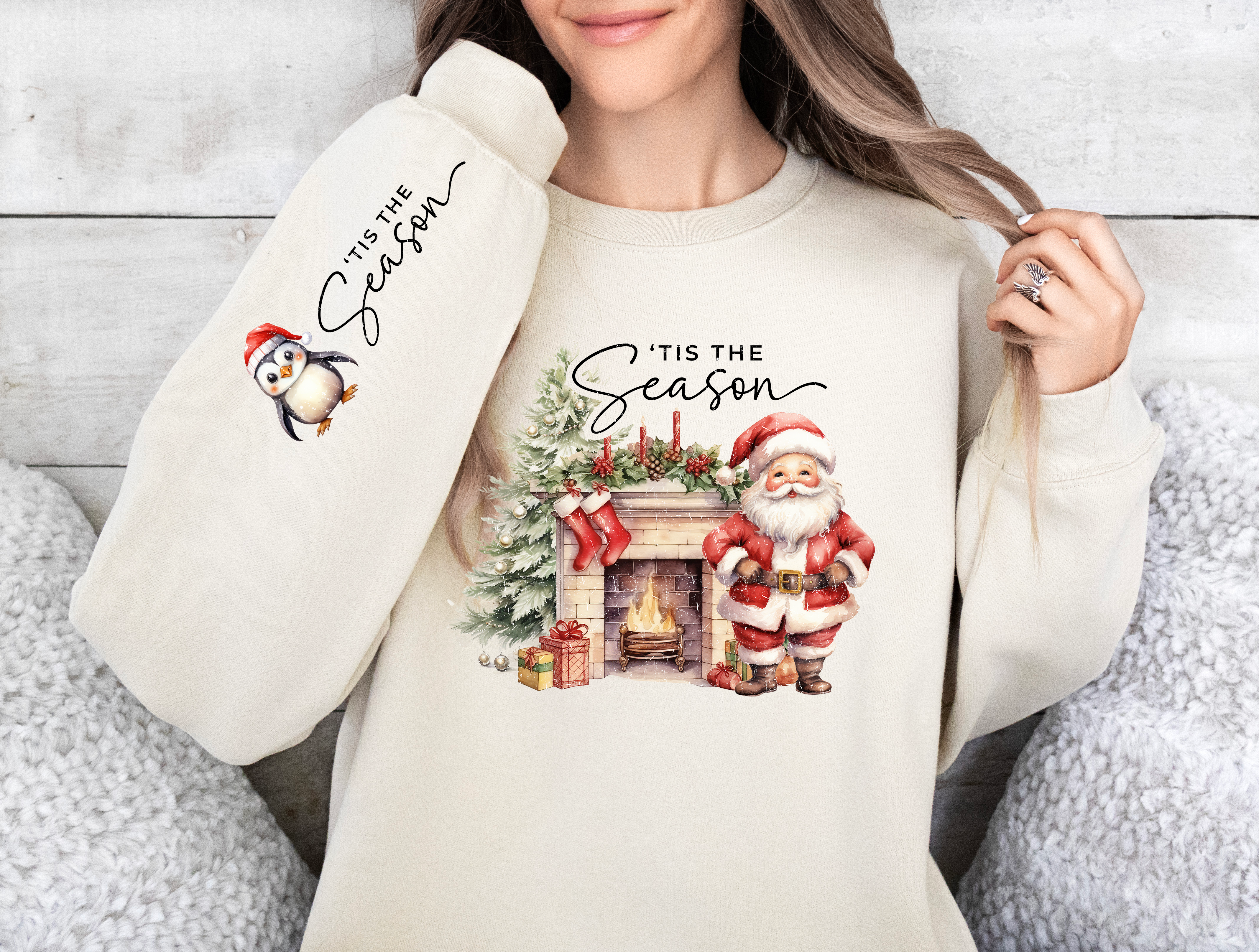 TIs The Season Vintage Christmas Fireplace Santa DTF Print