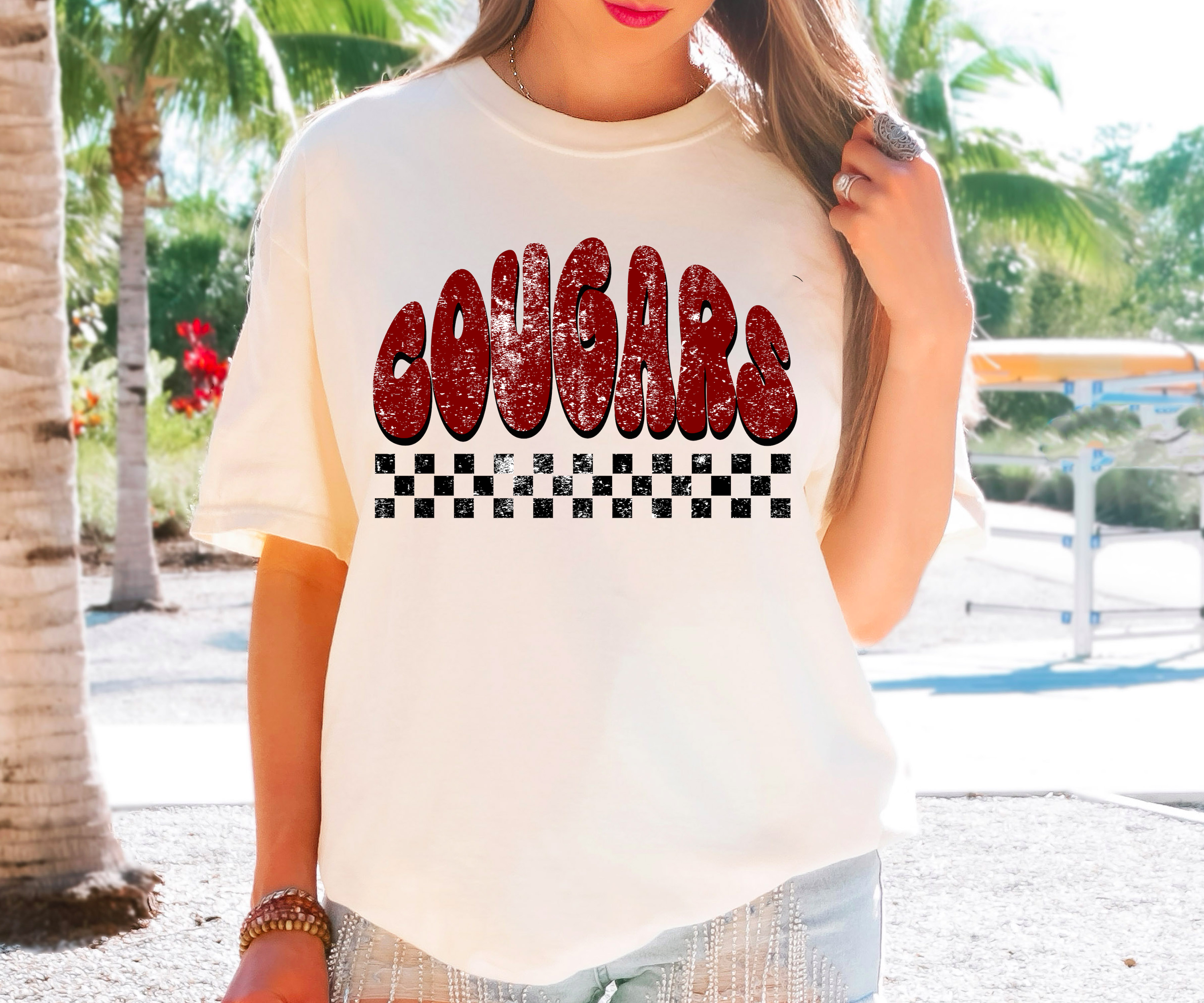 Cougars Retro Bolt Checker Teams Neon Outline DTF Print