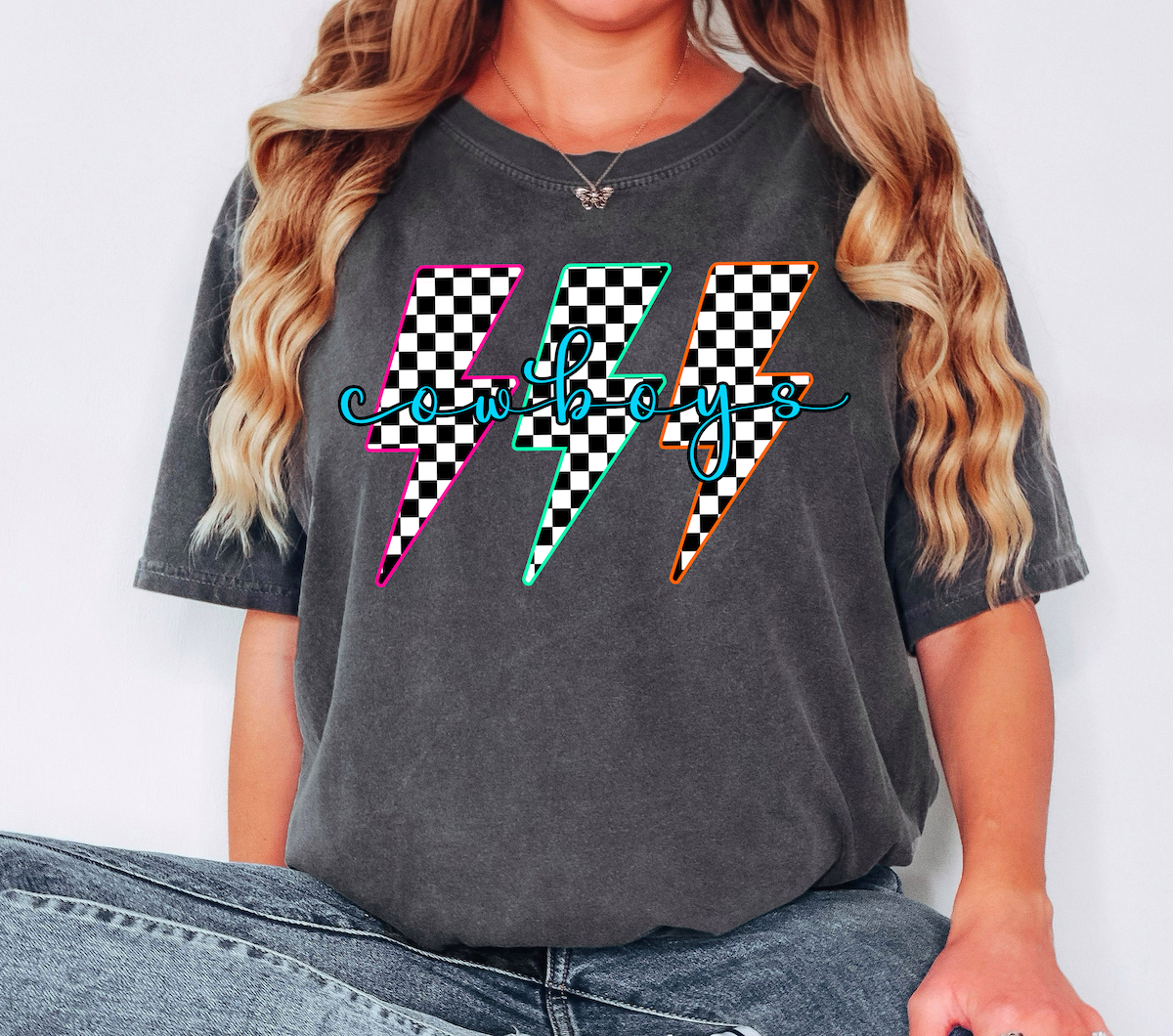Cowboys Retro Bolt Checker Teams Neon Outline DTF Print