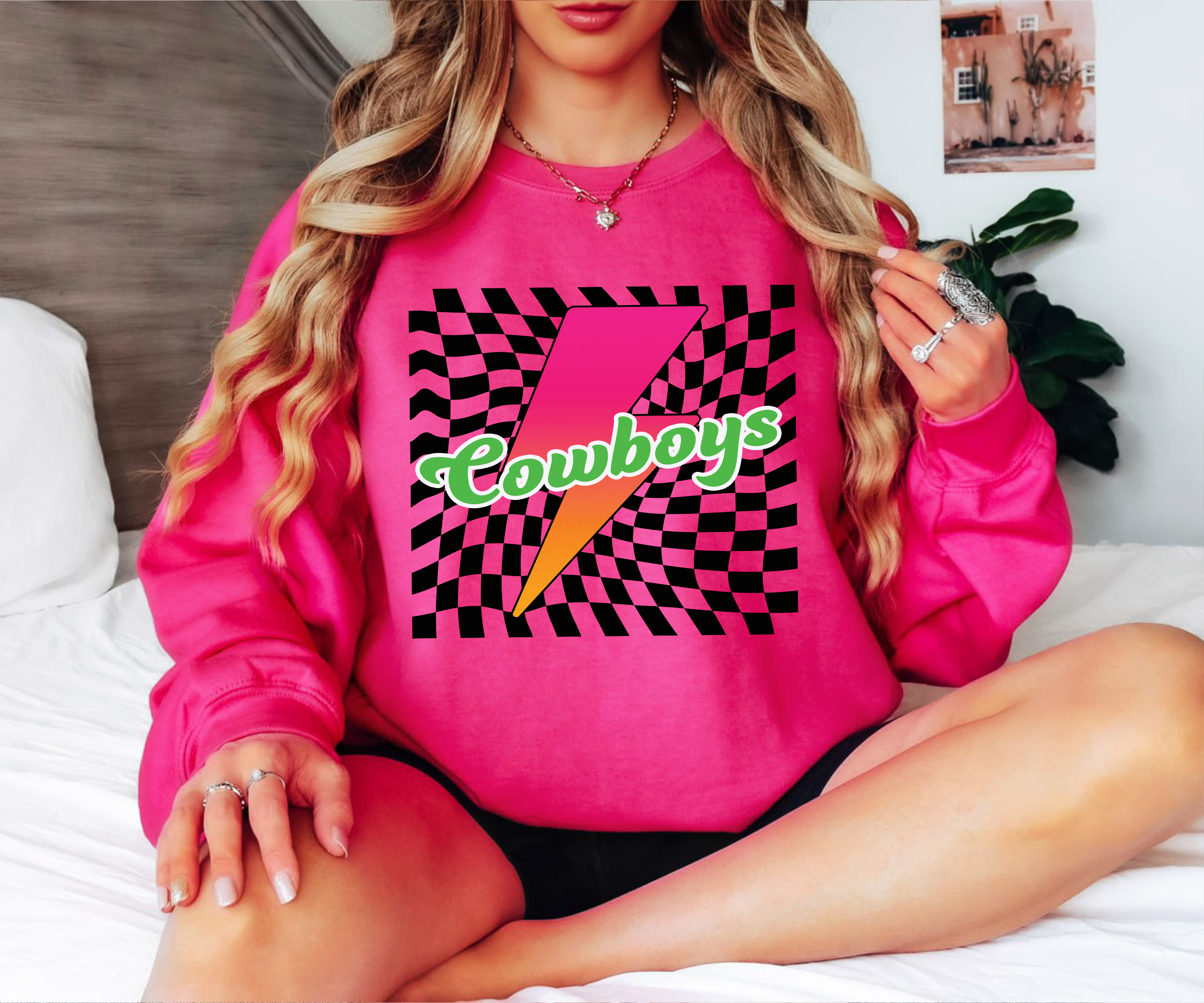 Cowboys Retro Bolt Checker Teams Neon Outline DTF Print
