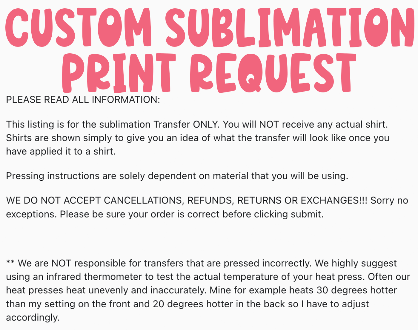 Custom Sublimation Print Request
