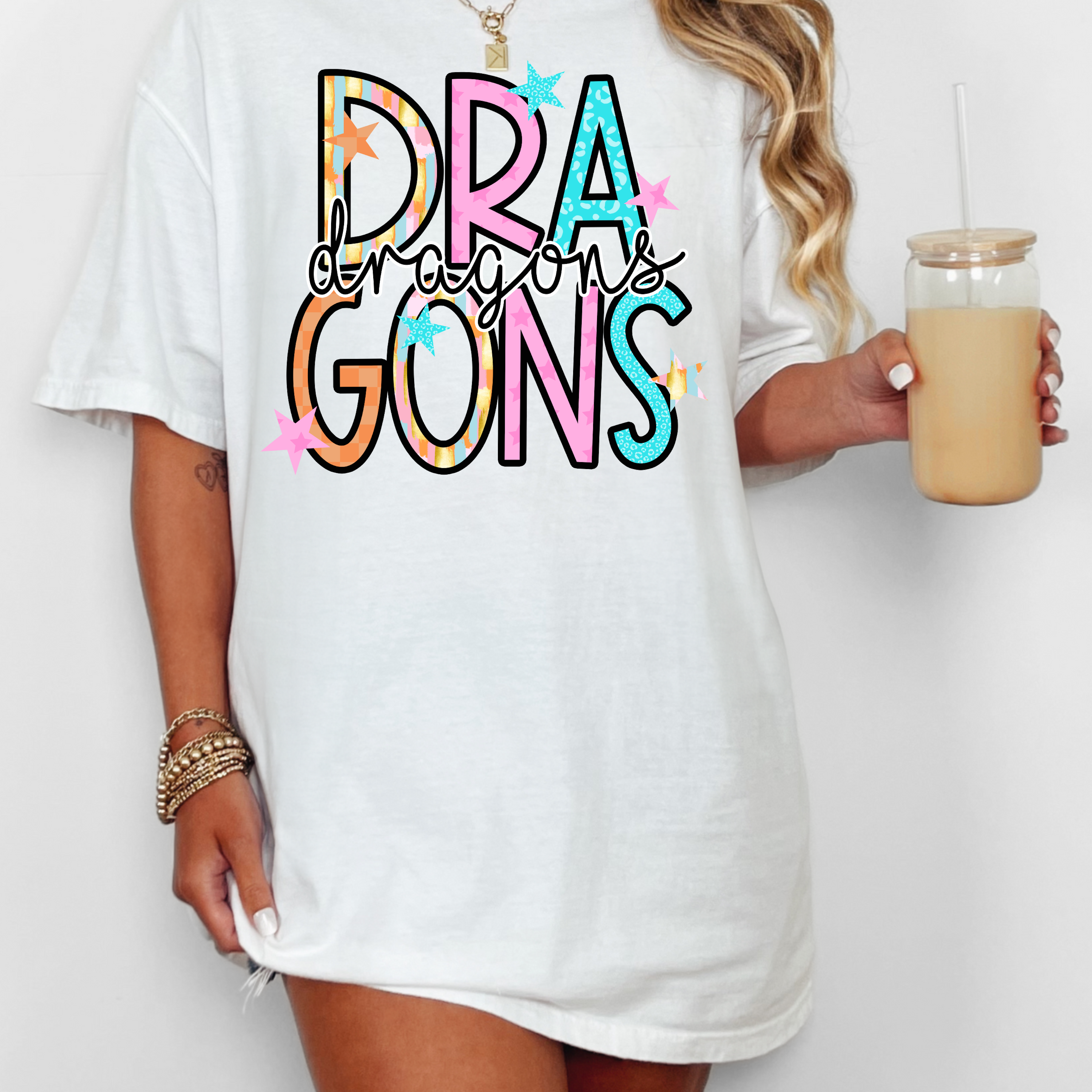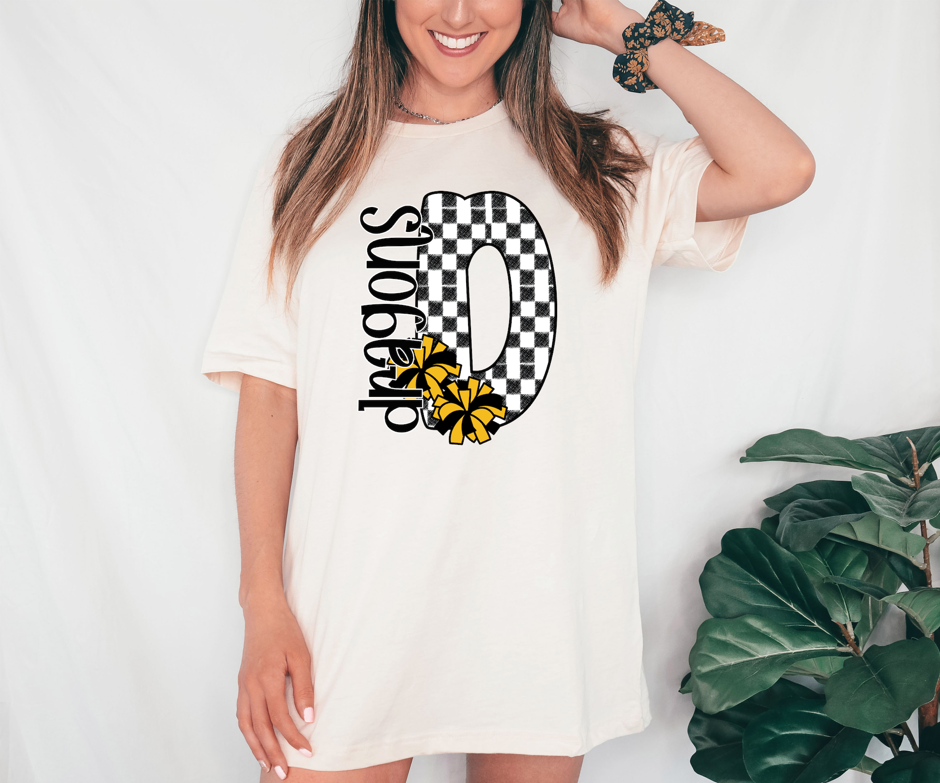 Dragons Retro Bolt Checker Teams Neon Outline DTF Print