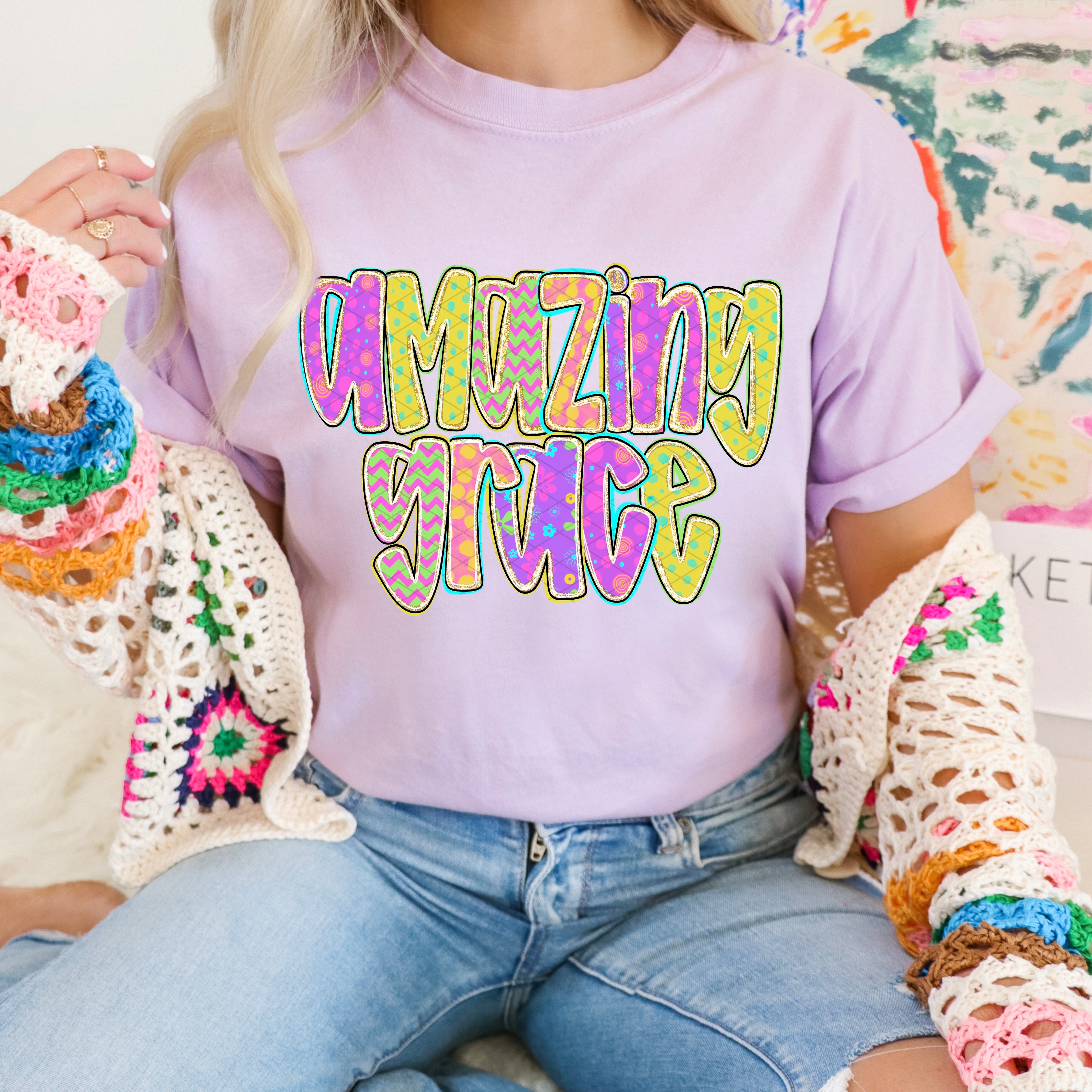 Amazing Grace Neon Pattern DTF Print