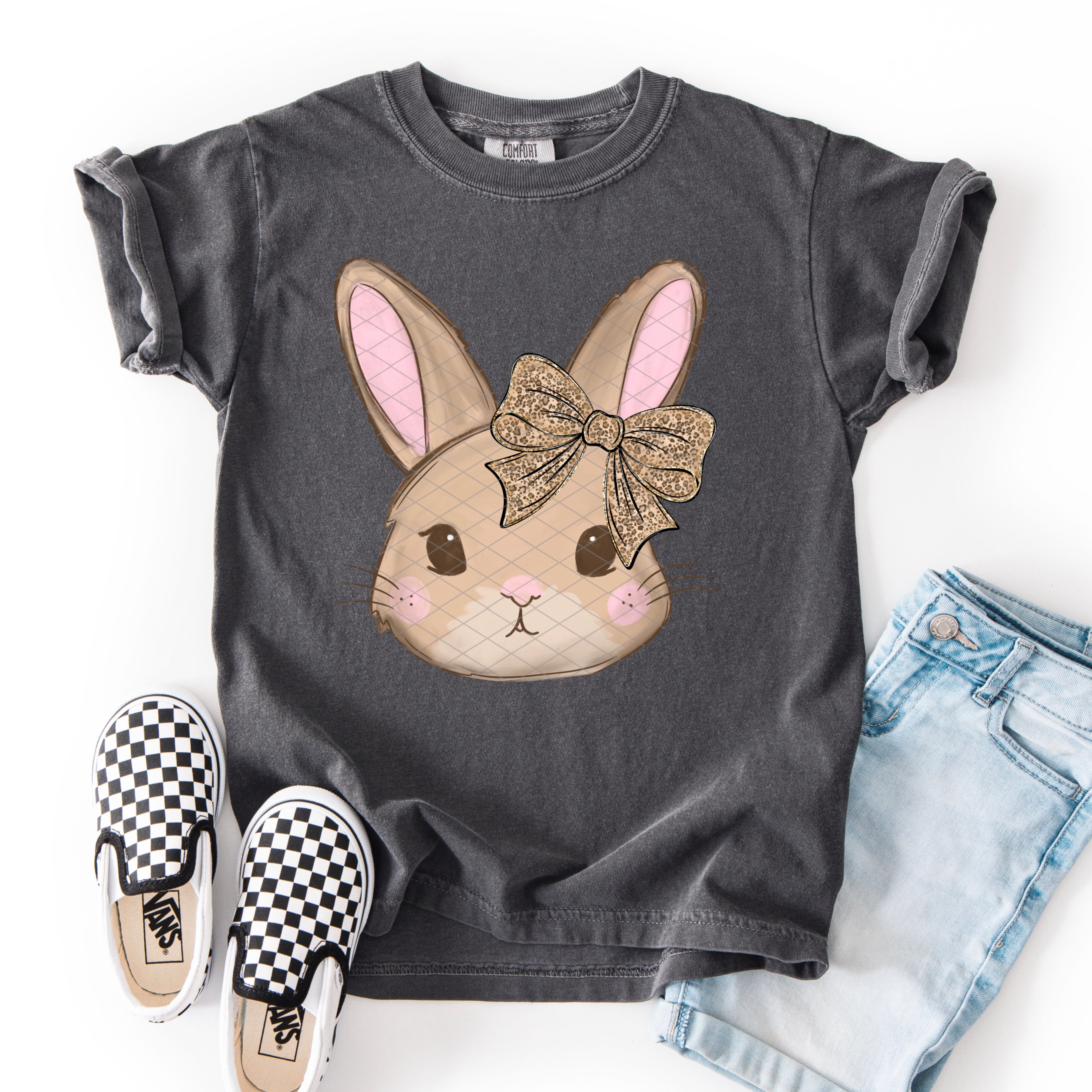 Pastel Painted Easter Bunny with Bow DTF Print