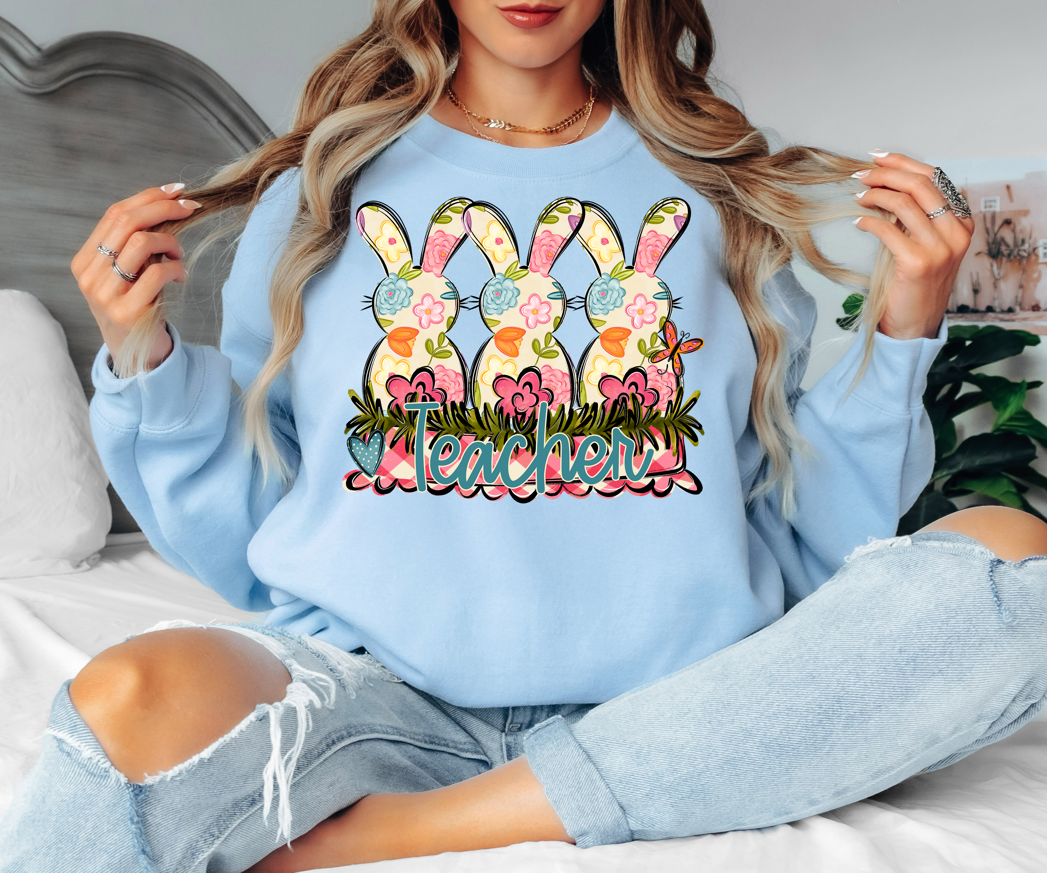 Personalized Floral Bunny Trio DTF Print