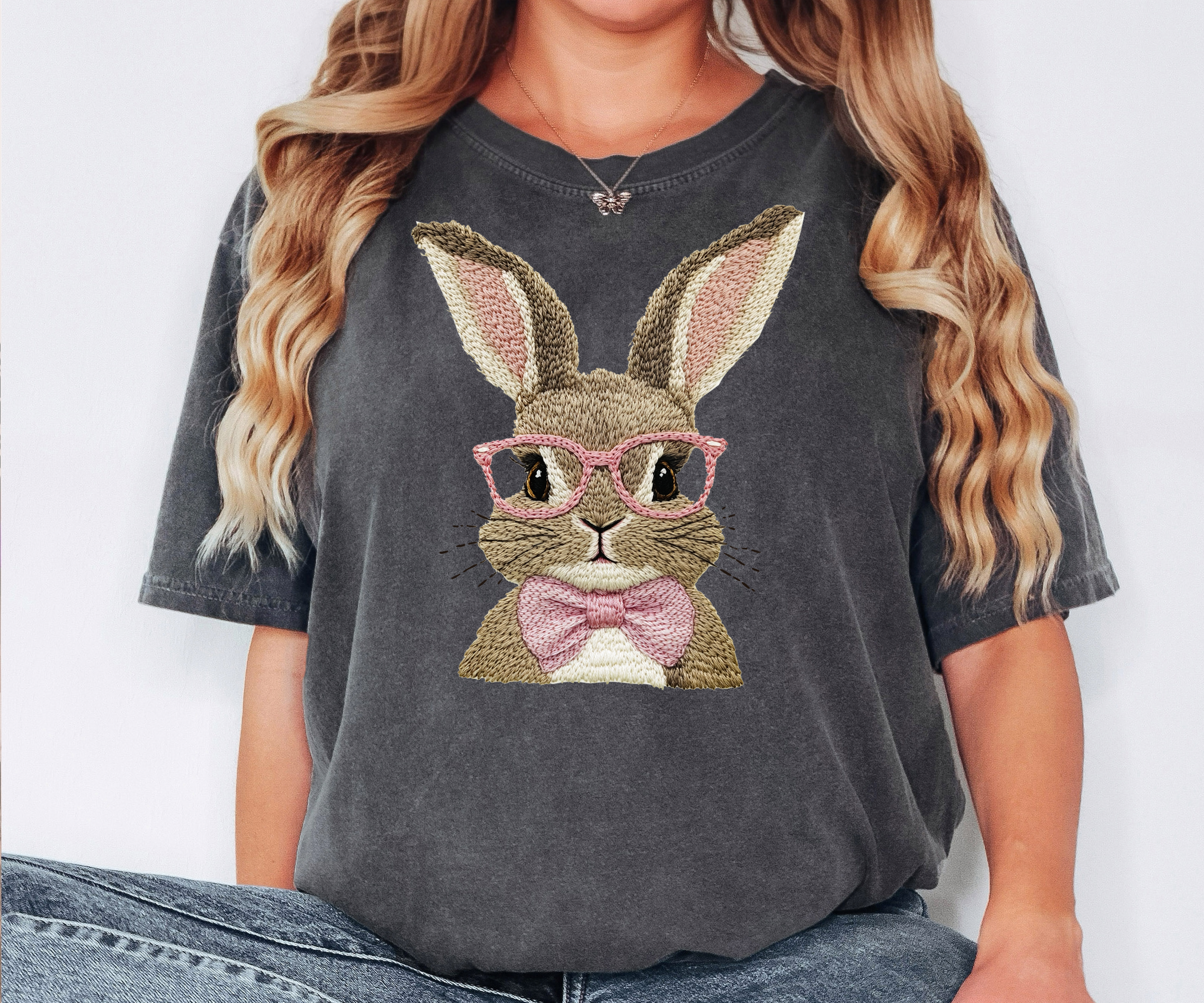 Easter Bunny Embroidery Effect DTF Print