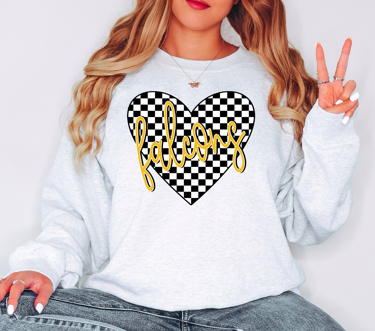 Falcons Retro Checker Heart DTF Print