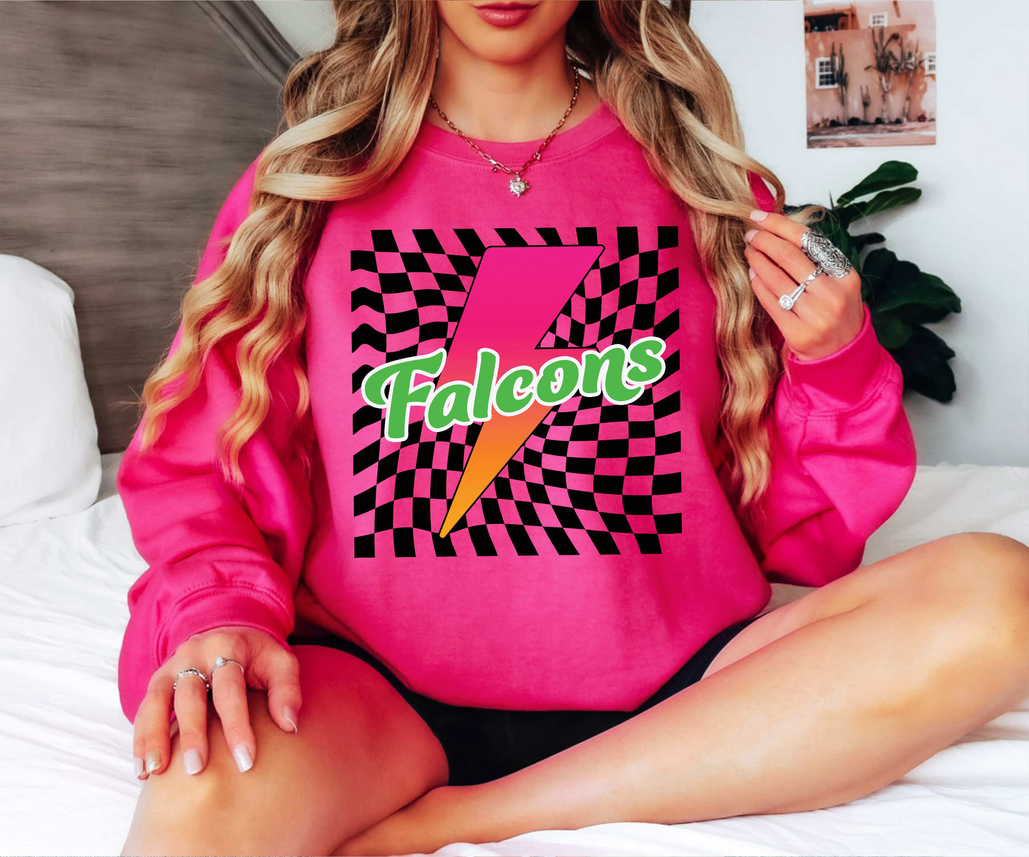 Falcons Retro Bolt Checker Teams Neon Outline DTF Print