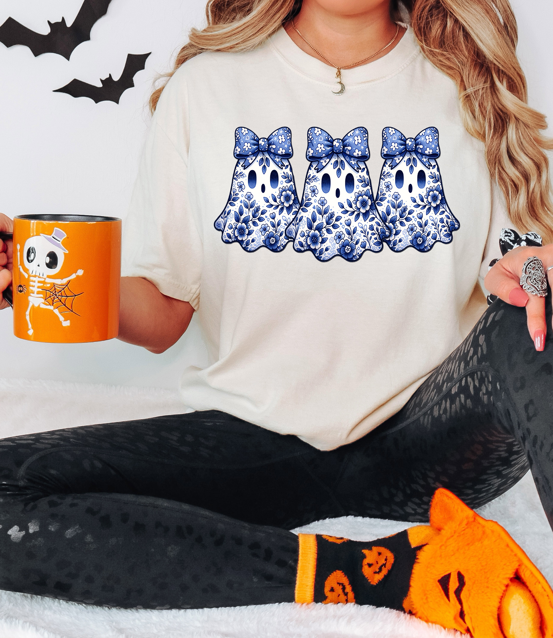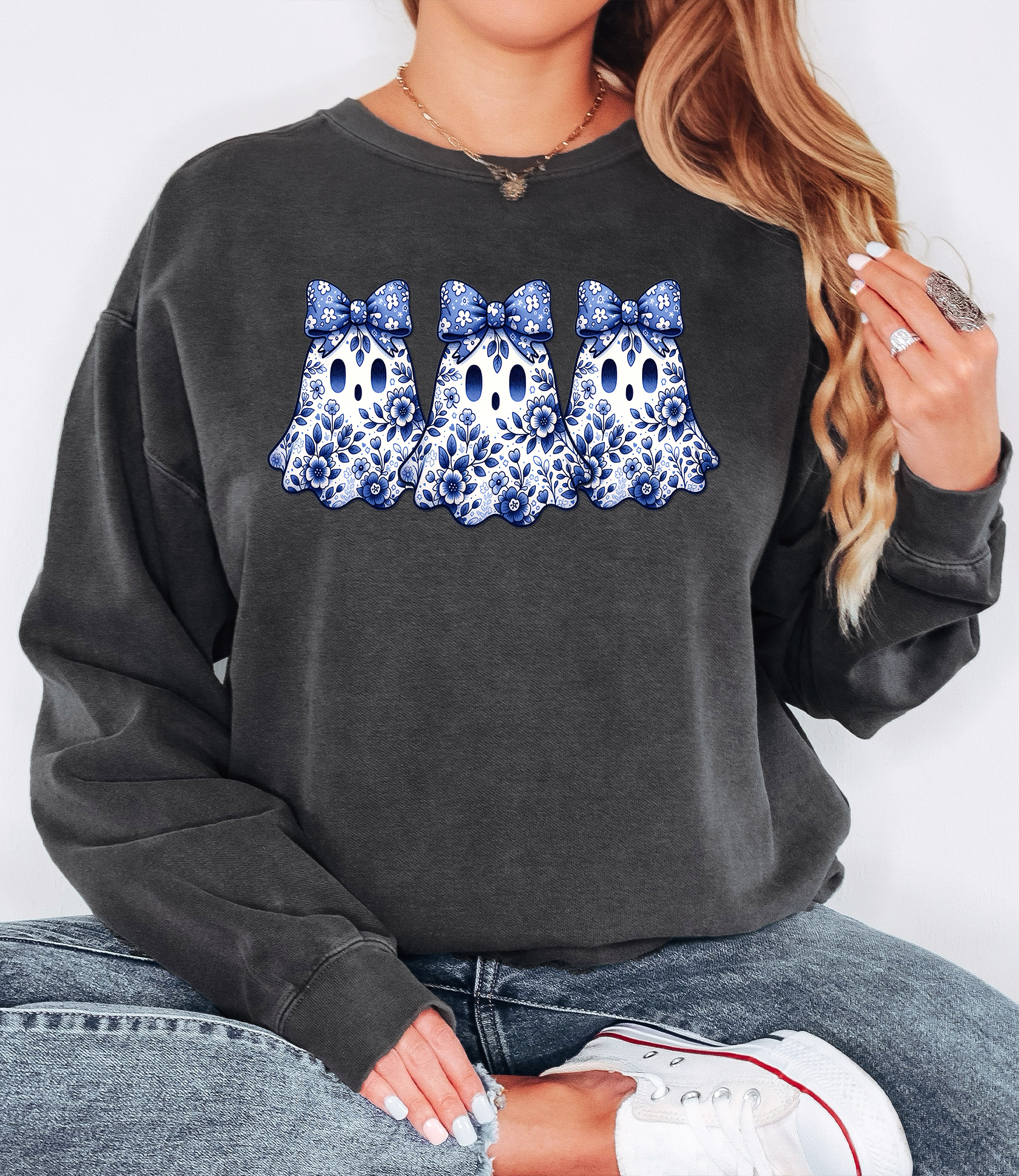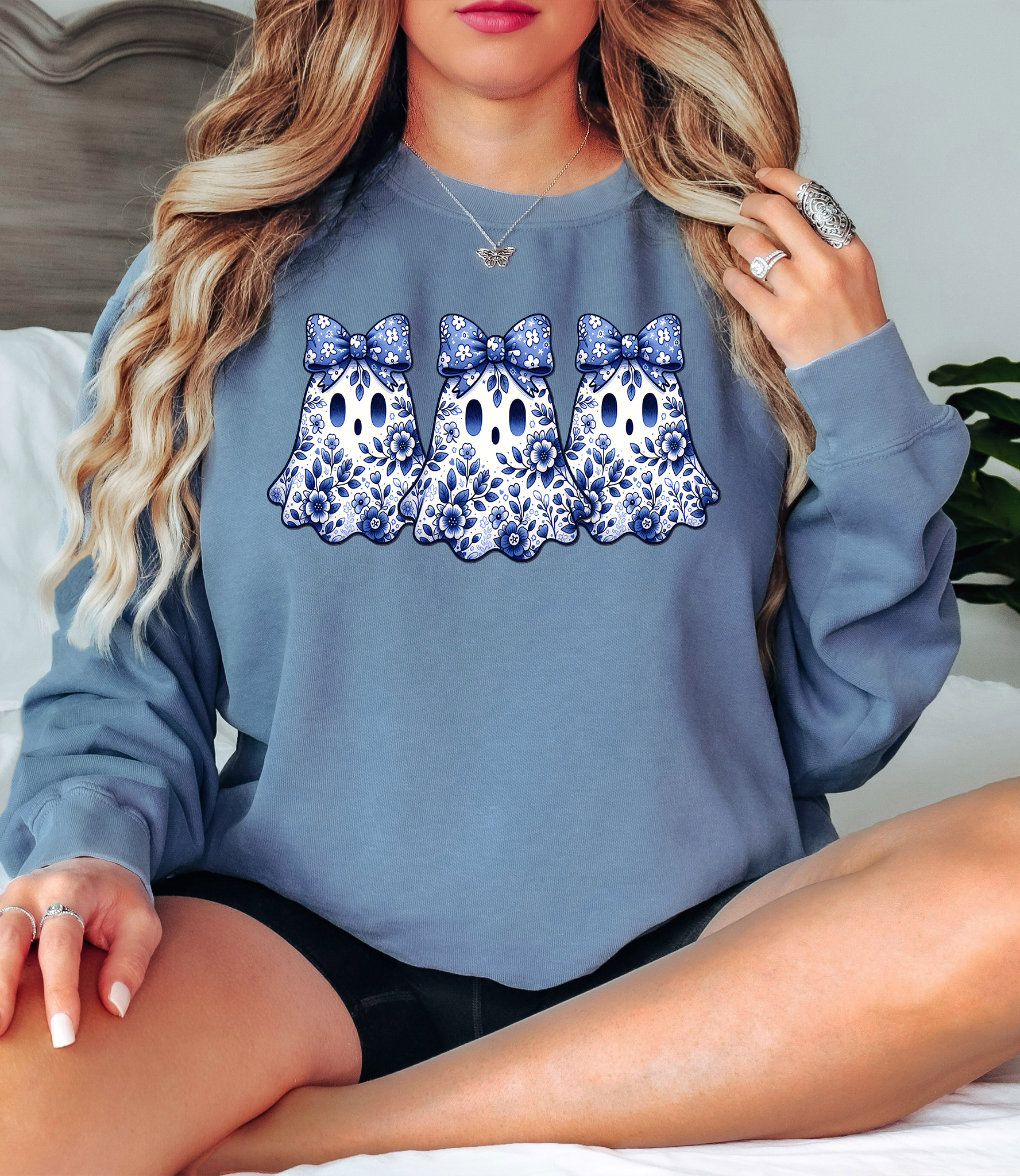 Blue Floral Ghost Trio DTF Print