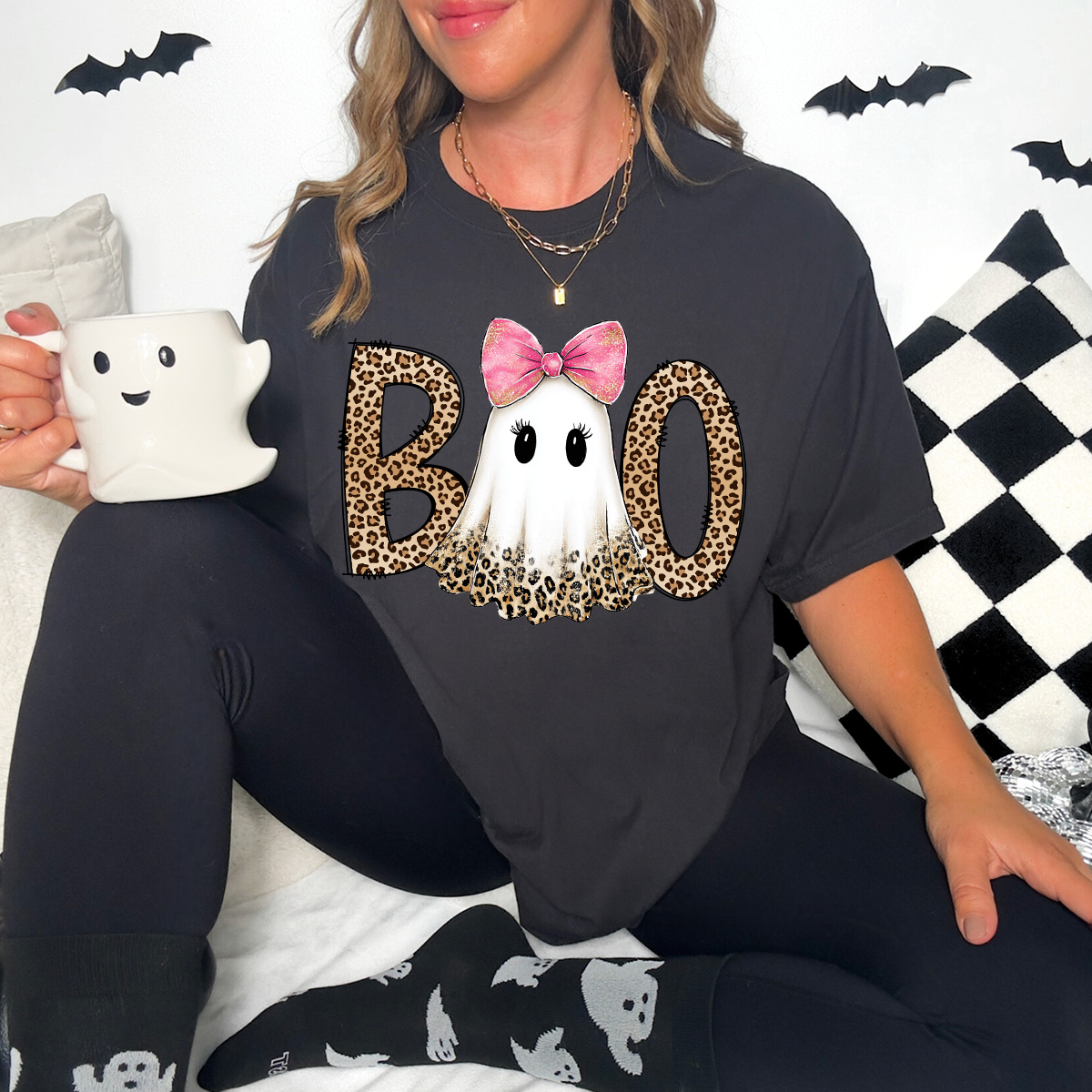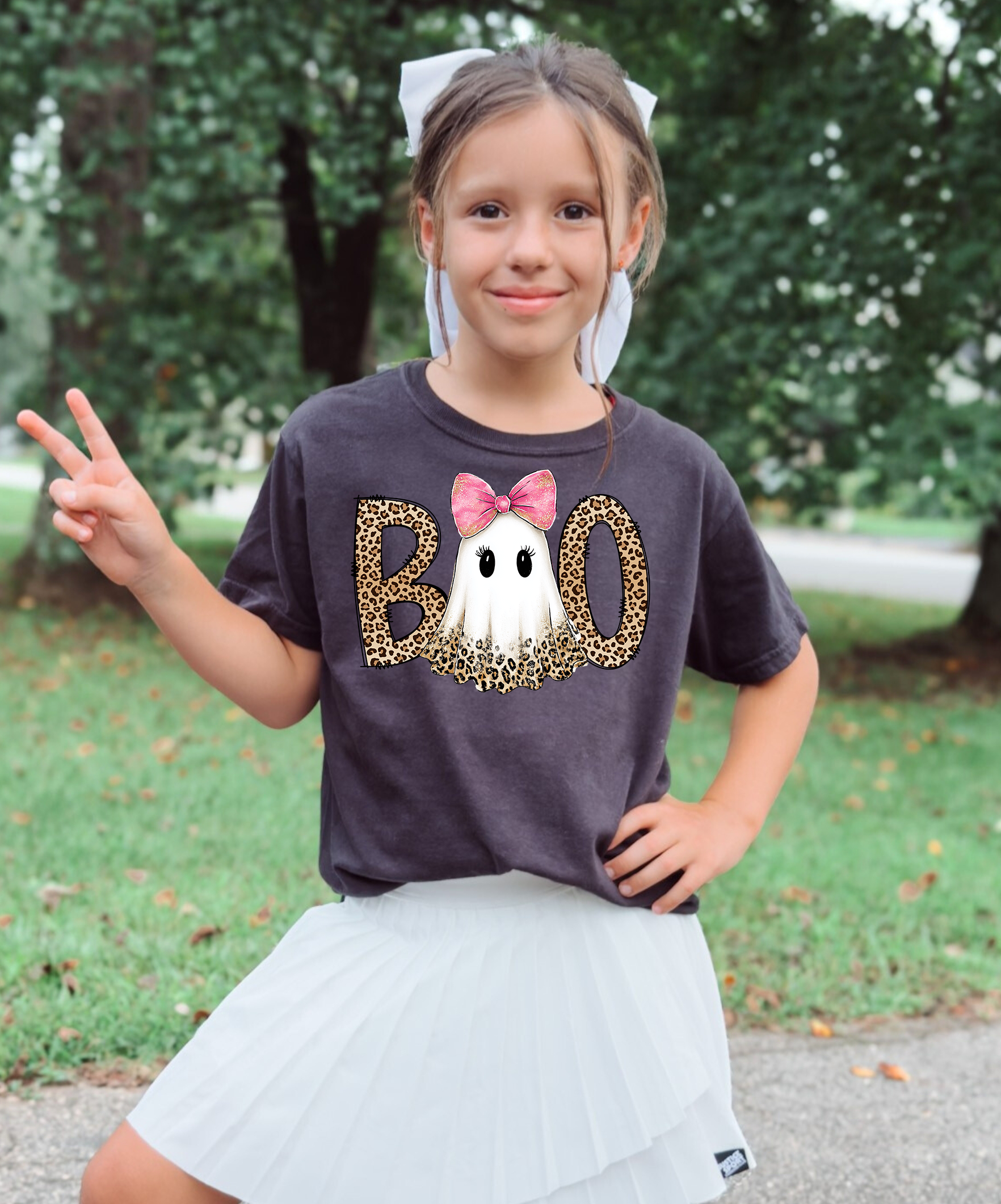 LEOPARD GHOST PINK BOW DTF Print