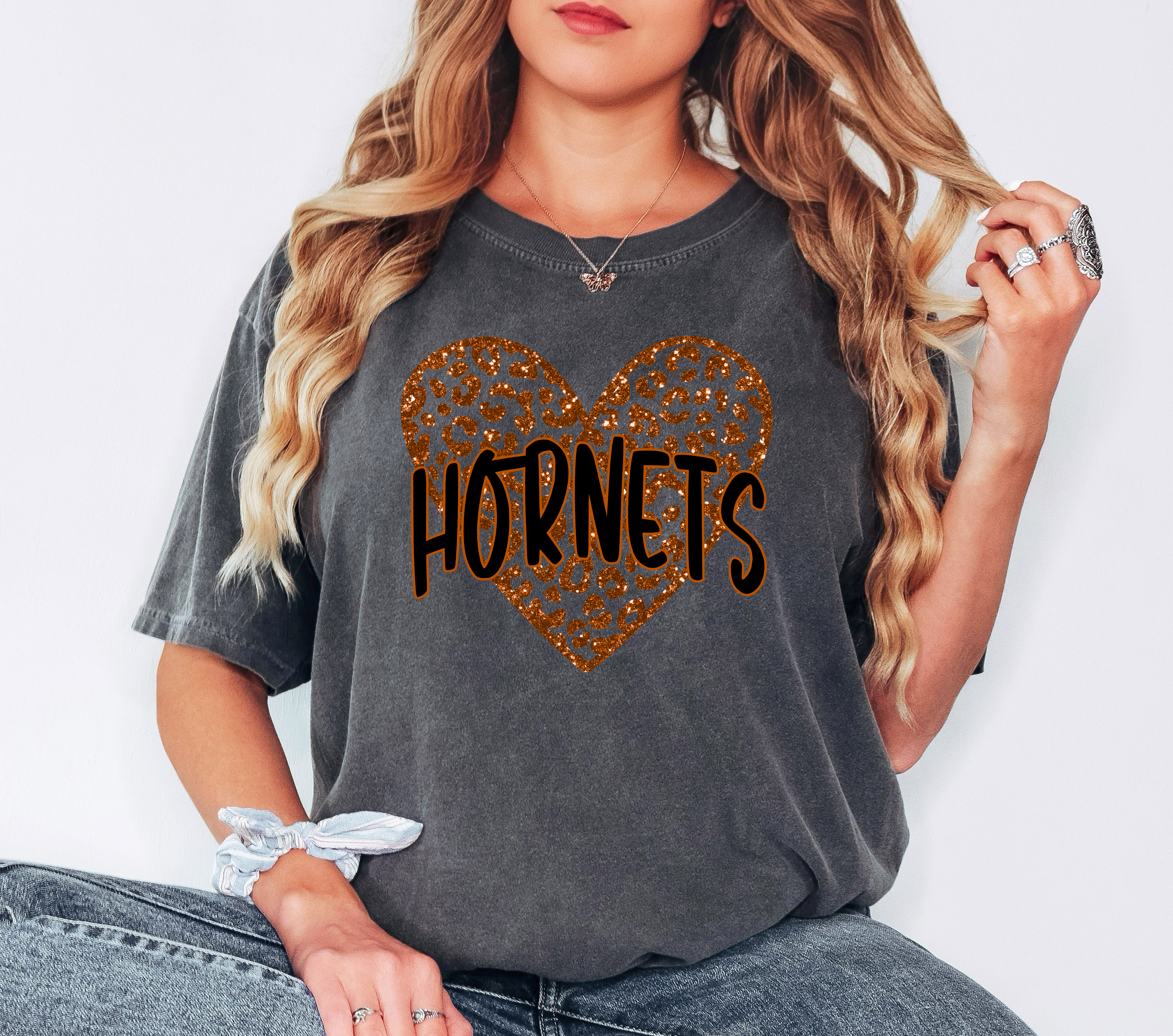 Hornets Faux Glitter Heart DTF Print
